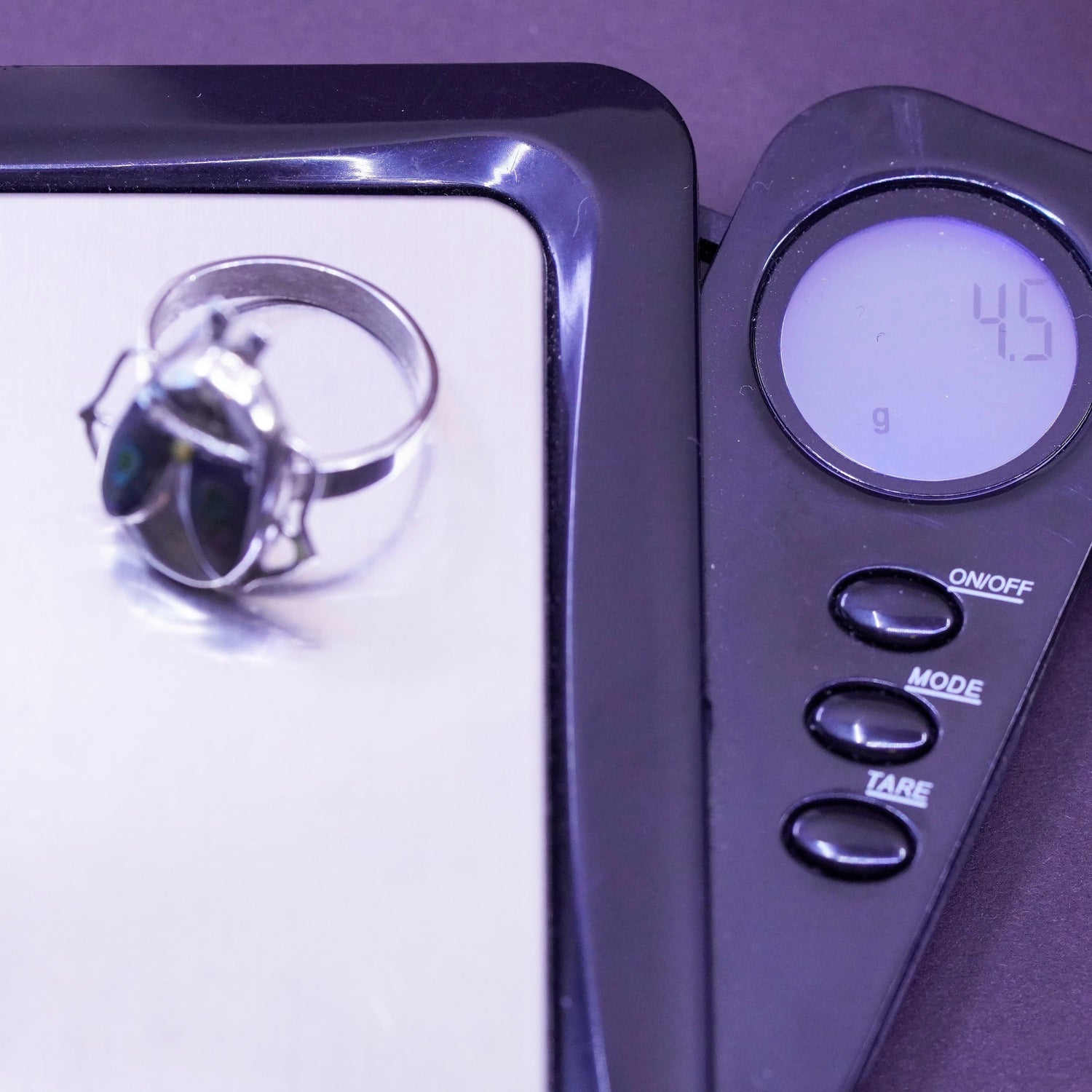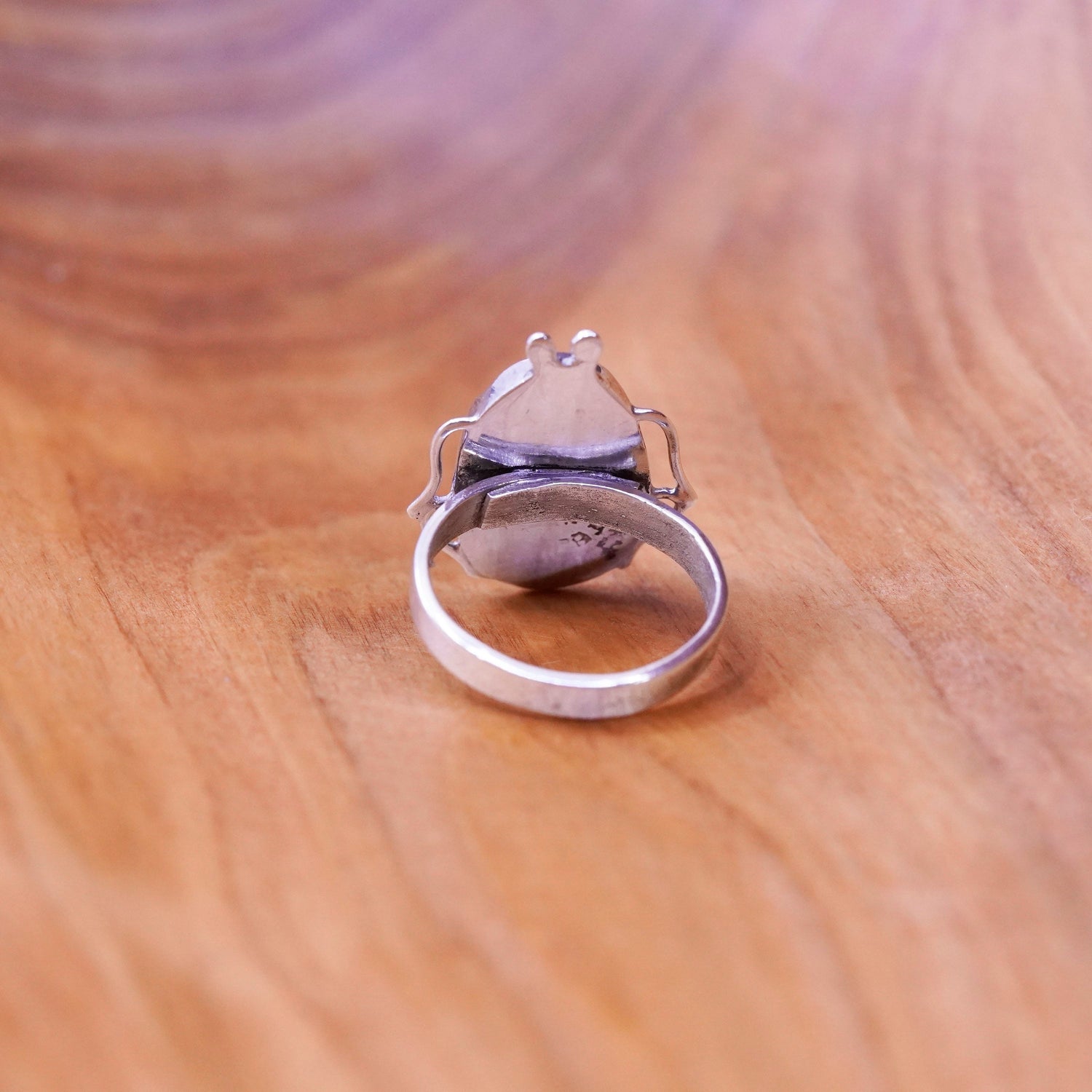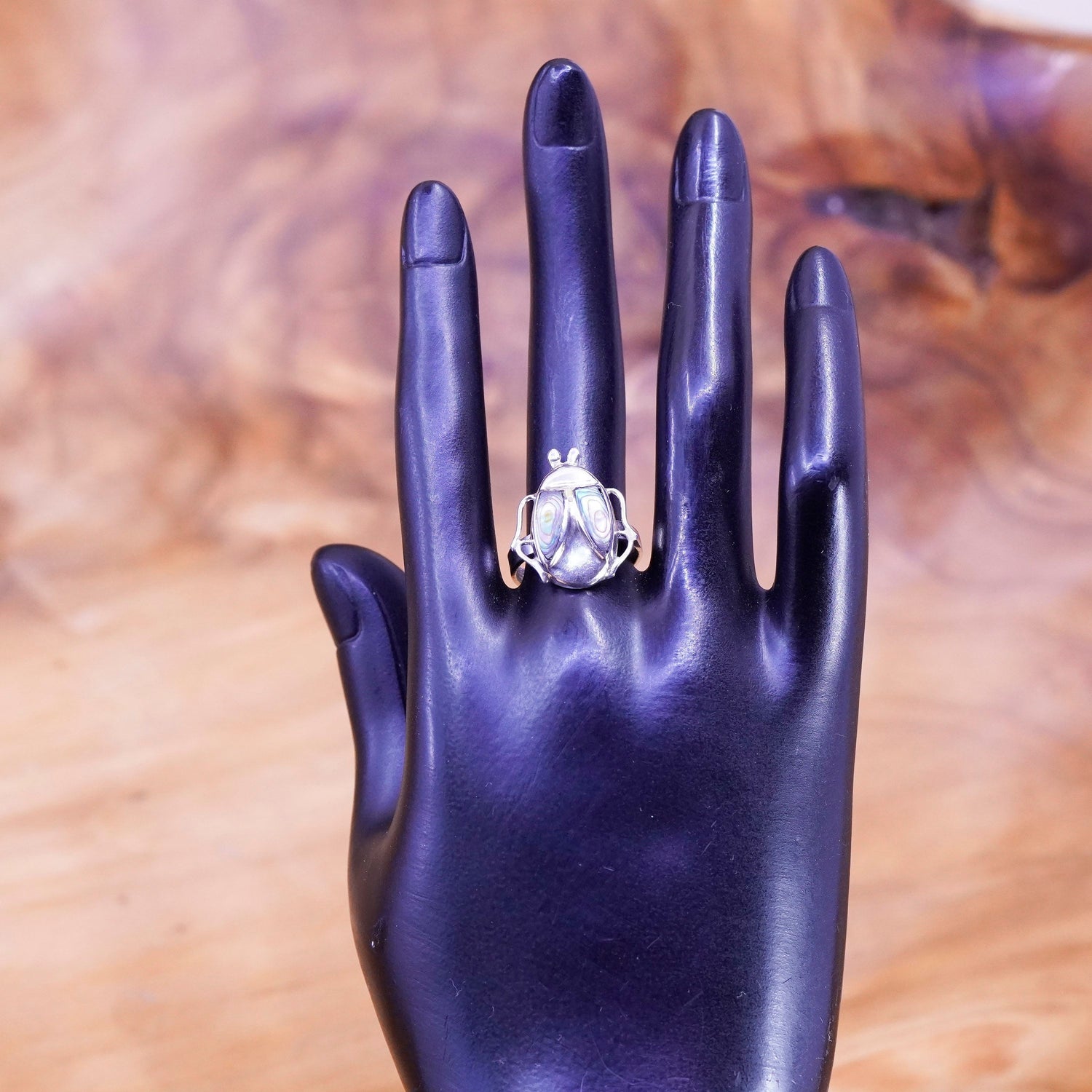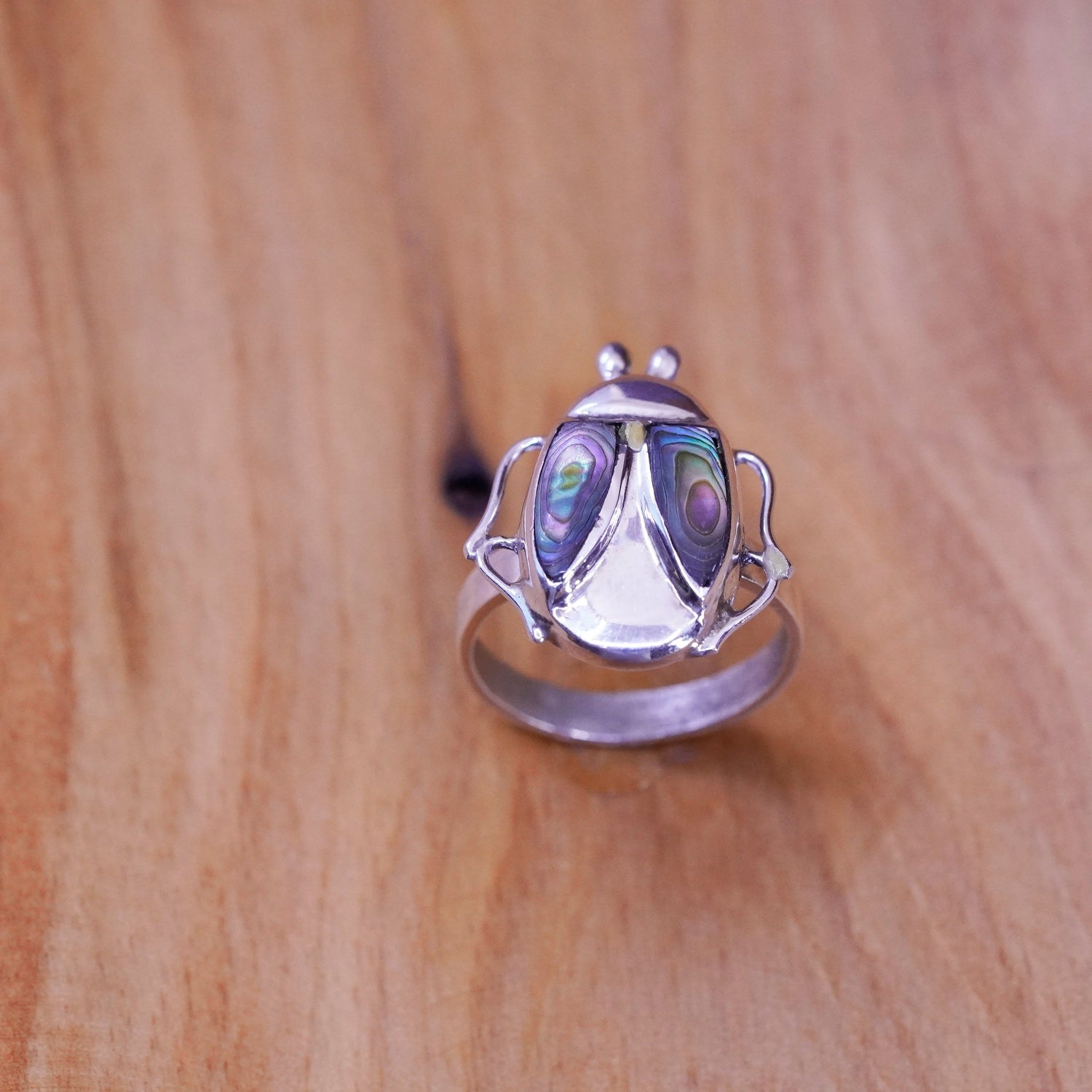 Size 6.25, vintage Mexico sterling silver handmade ring, 925 firefly with abalone, stamped 925 Mexico