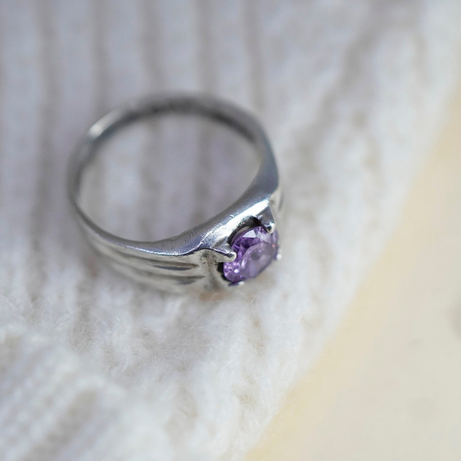 Size 6.25, vintage Sterling 925 silver handmade ring with amethyst