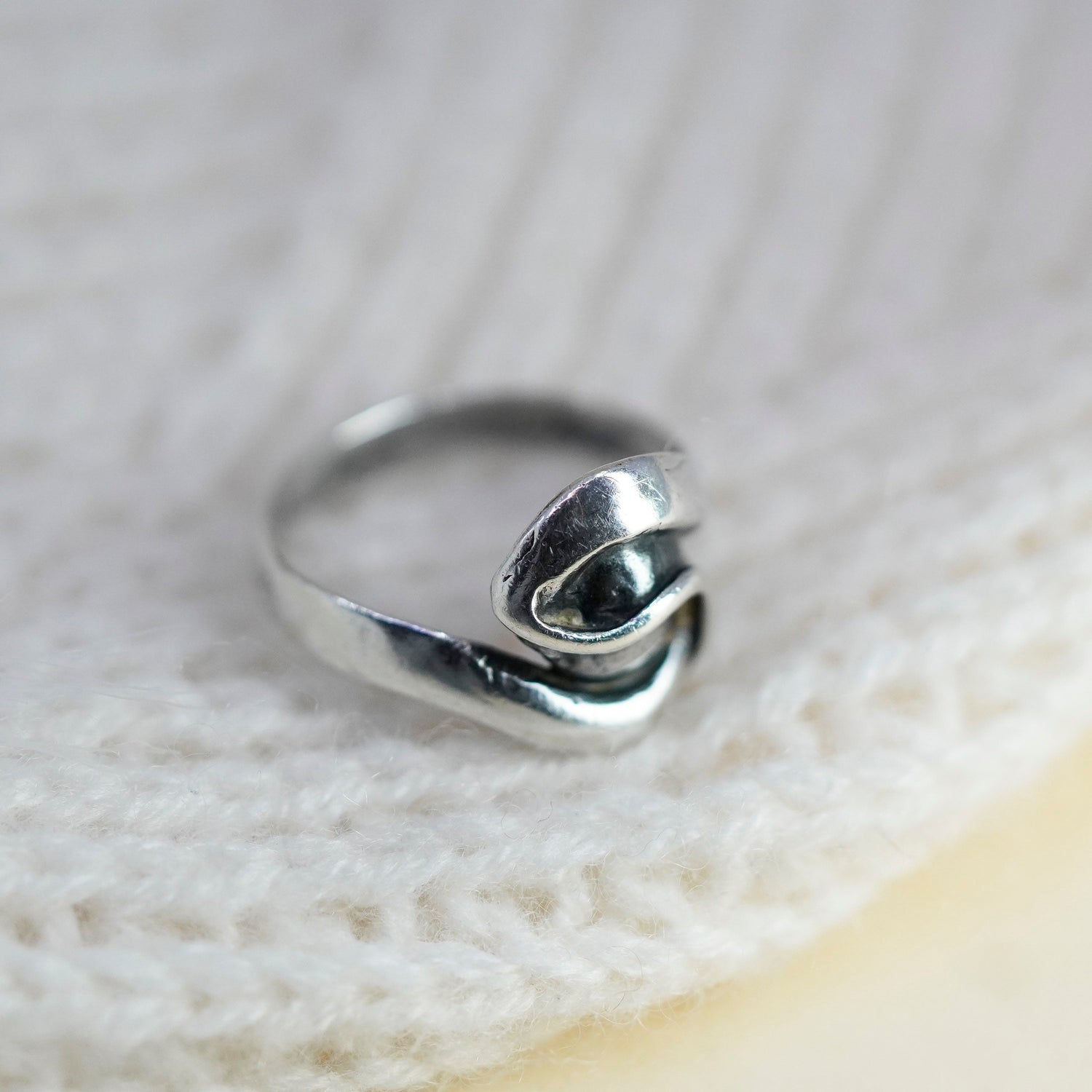 Size 6.5, vintage sterling 925 silver handmade ring, wavy band, minimalist, modernist, stamped 925