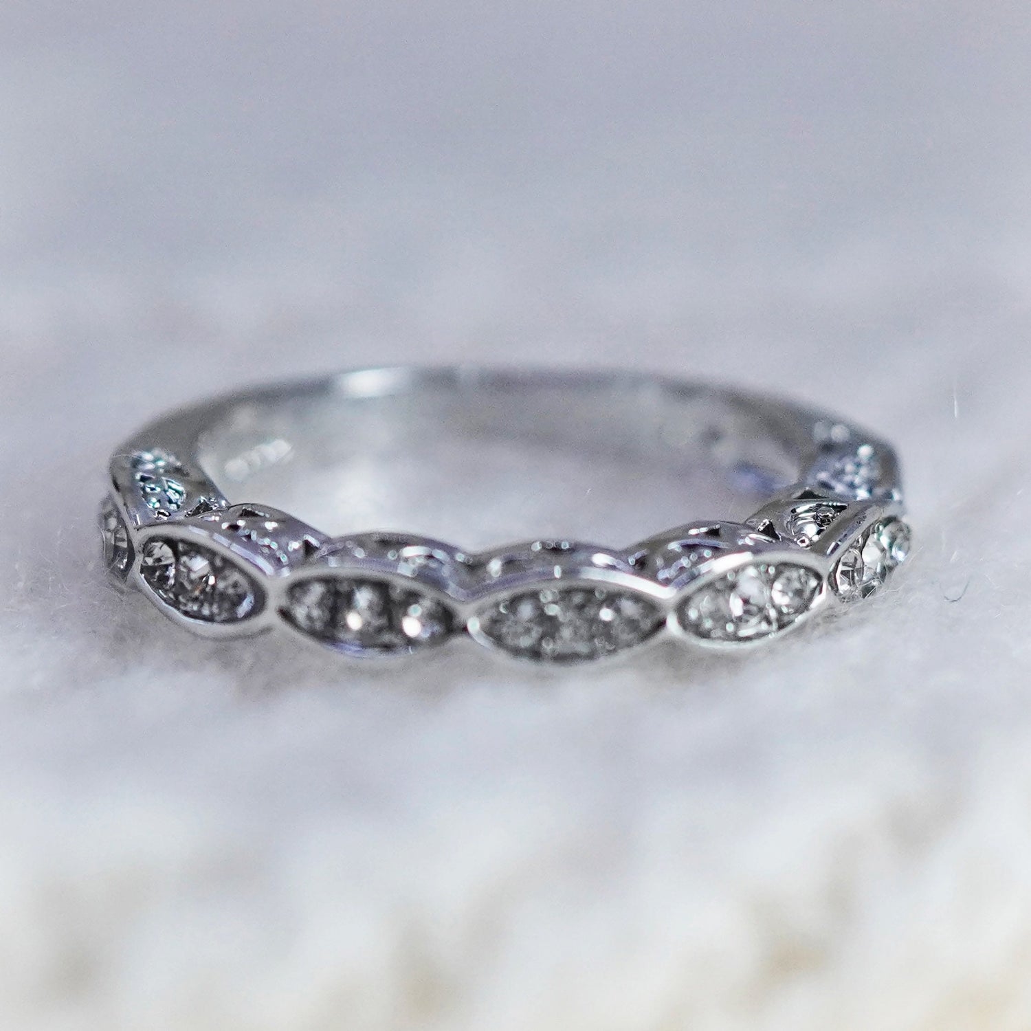 Size 6.5, sterling 925 silver ring cluster round CZ, stackable wedding band