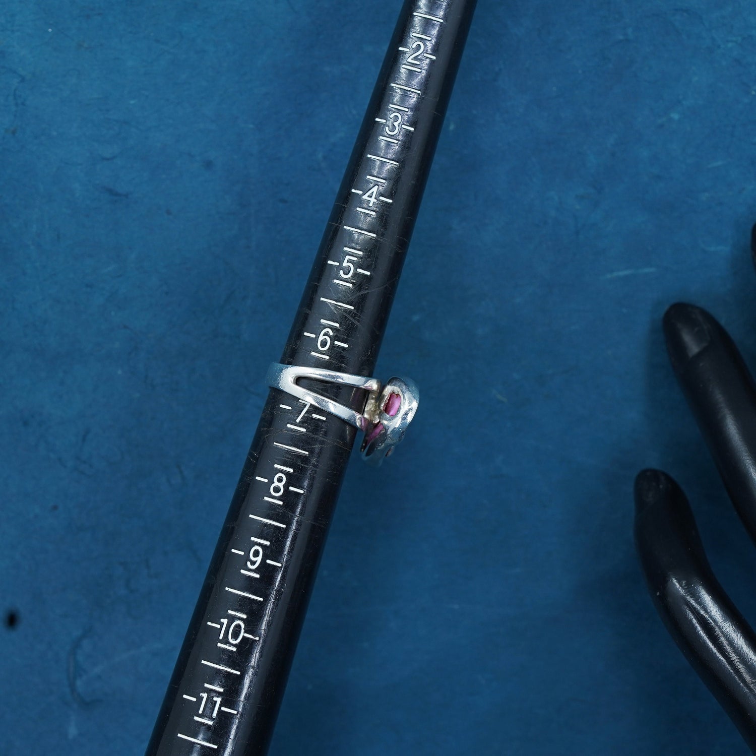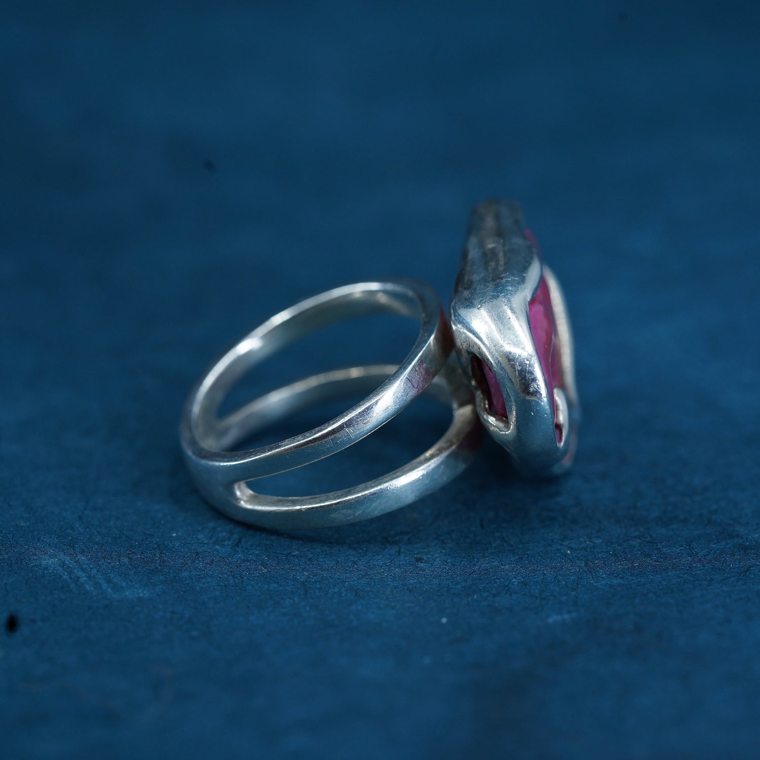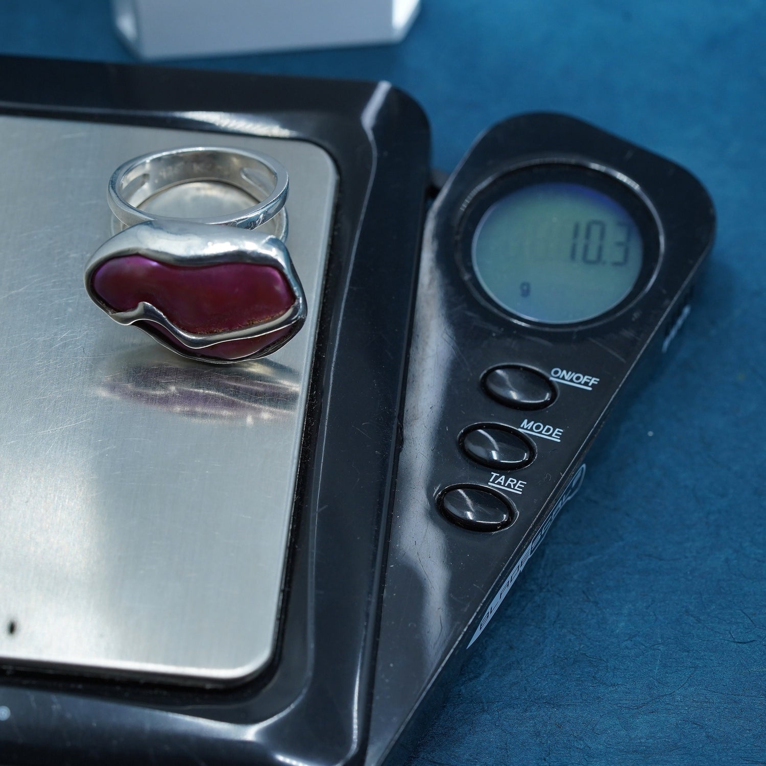 Size 6.5, vintage textured Sterling 925 Silver liquid formation ring with pink pearl, stamped 925