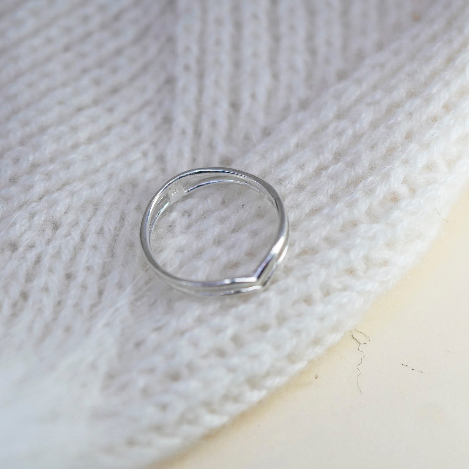 Size 6.5, vintage sterling silver handmade ring, 925 V shaped band, minimalist, modernist, stamped 925