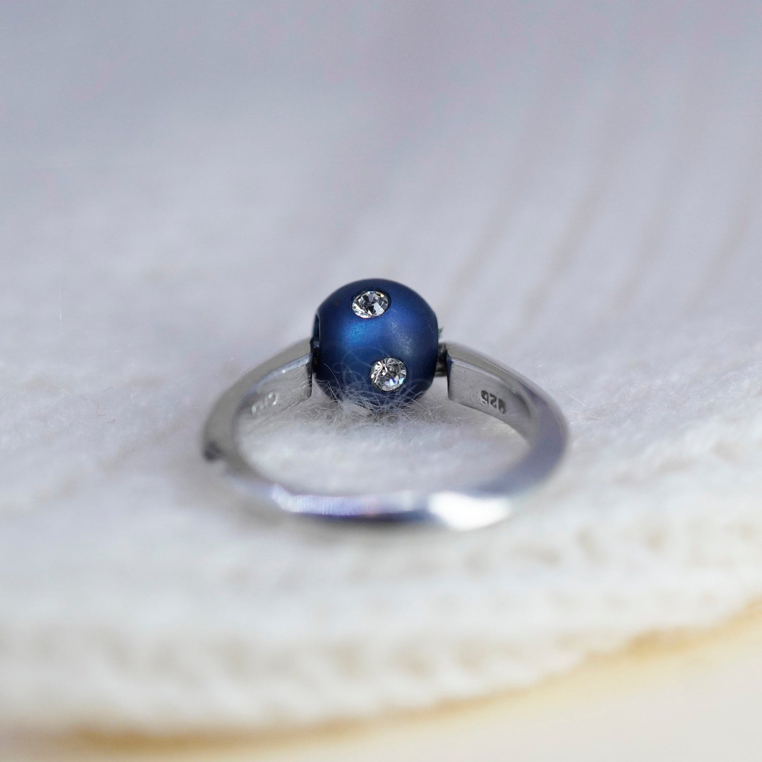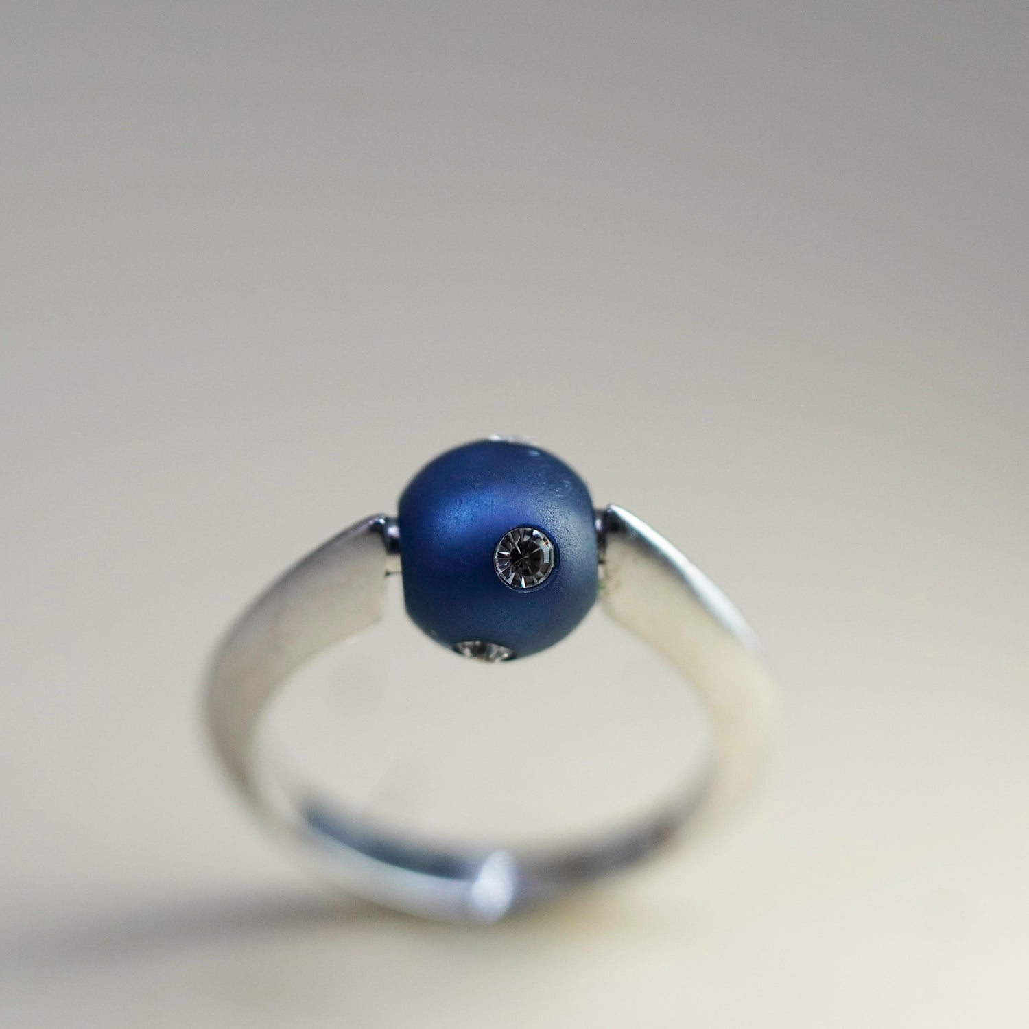 Size 6.5, Vintage sterling silver handmade ring with blue bead, stamped 925 CHD