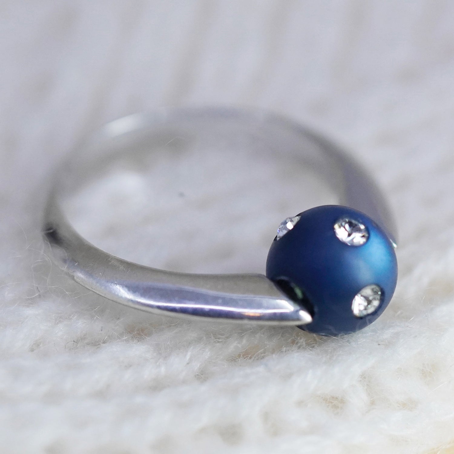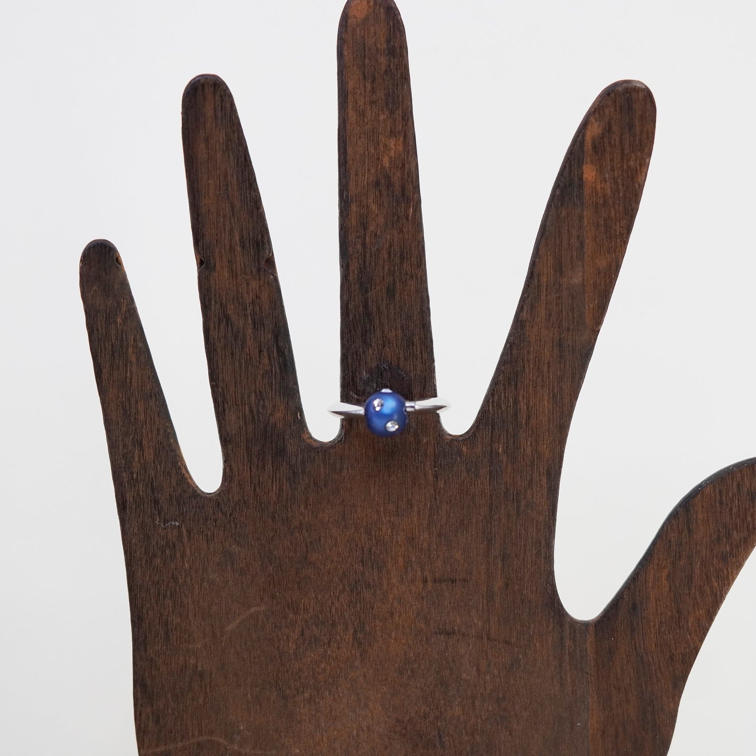 Size 6.5, Vintage sterling silver handmade ring with blue bead