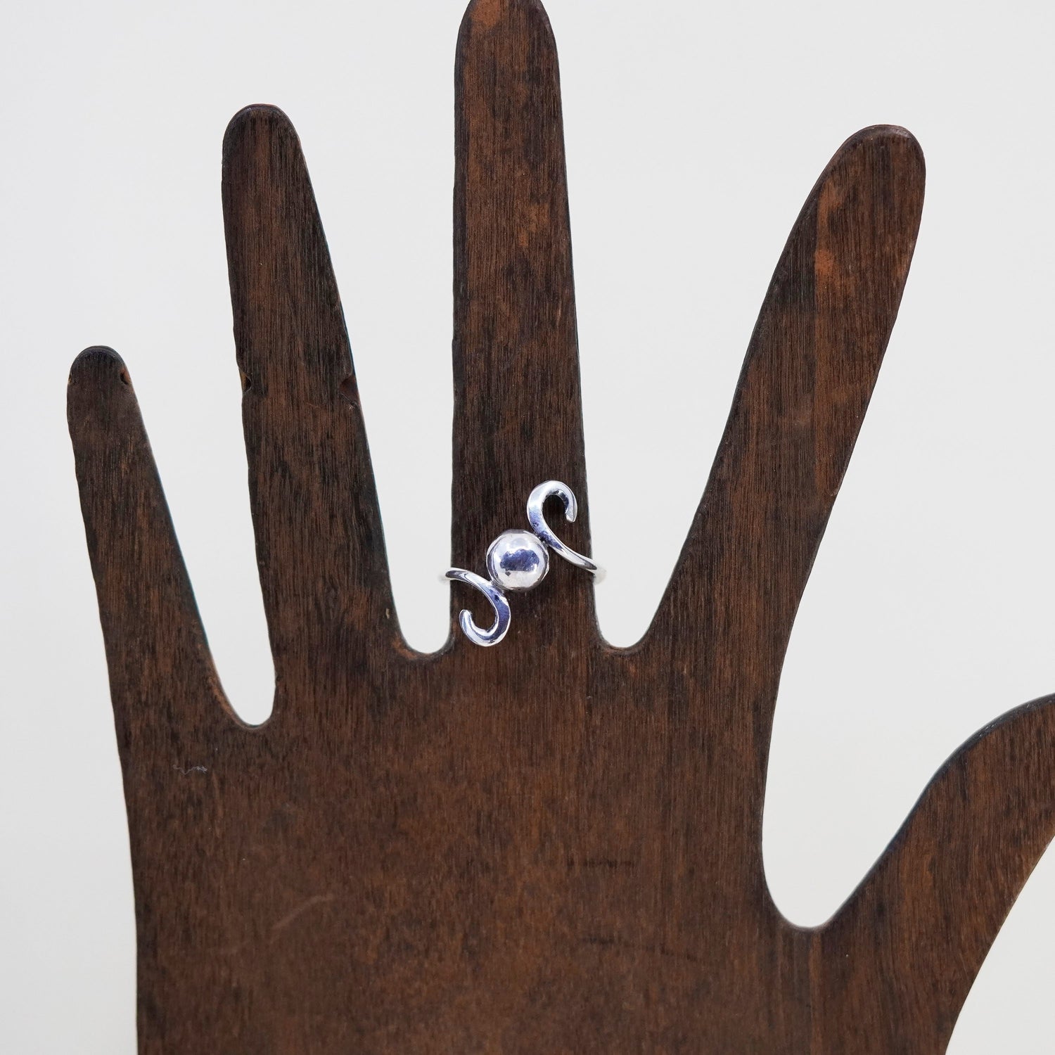 Size 6.75, vintage sterling silver handmade statement ring, 925 swirly band with bead, silver tested