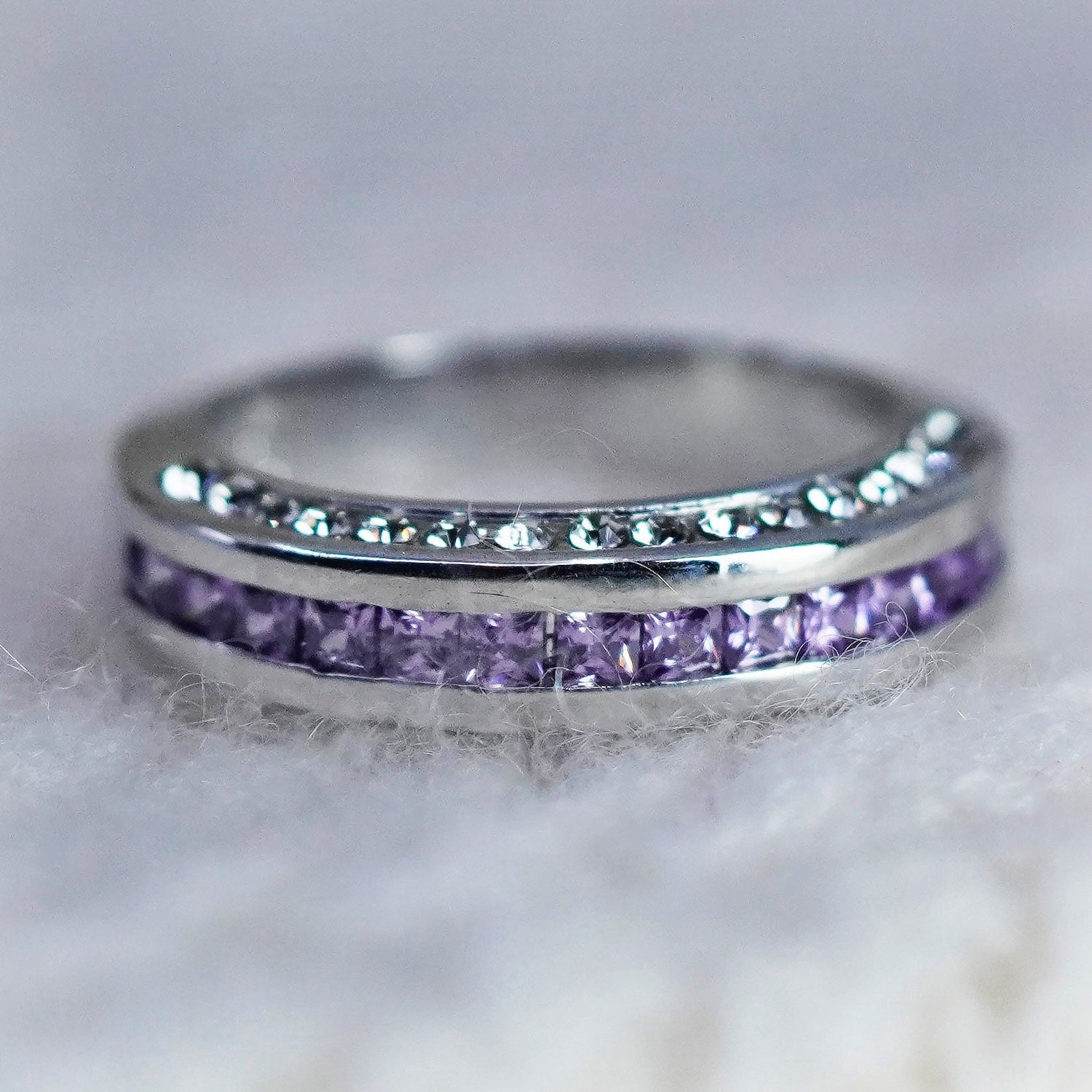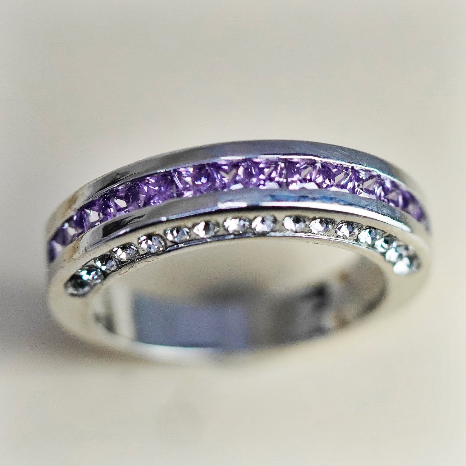 Size 6.75, vintage Sterling silver cocktail ring, 925 band w/ cluster amethyst