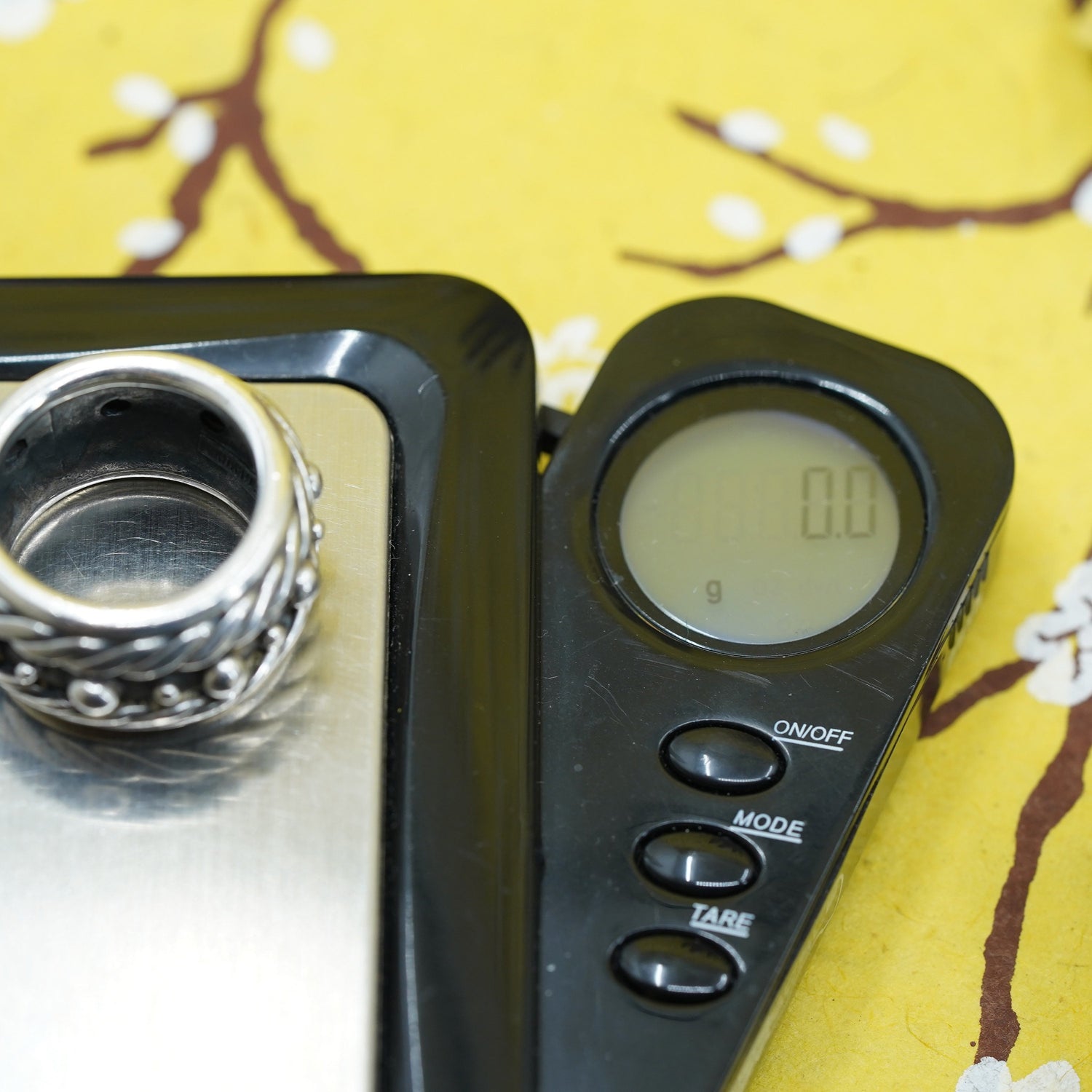 size 6.75, vintage Sterling silver handmade ring, 925 wide band with beads
