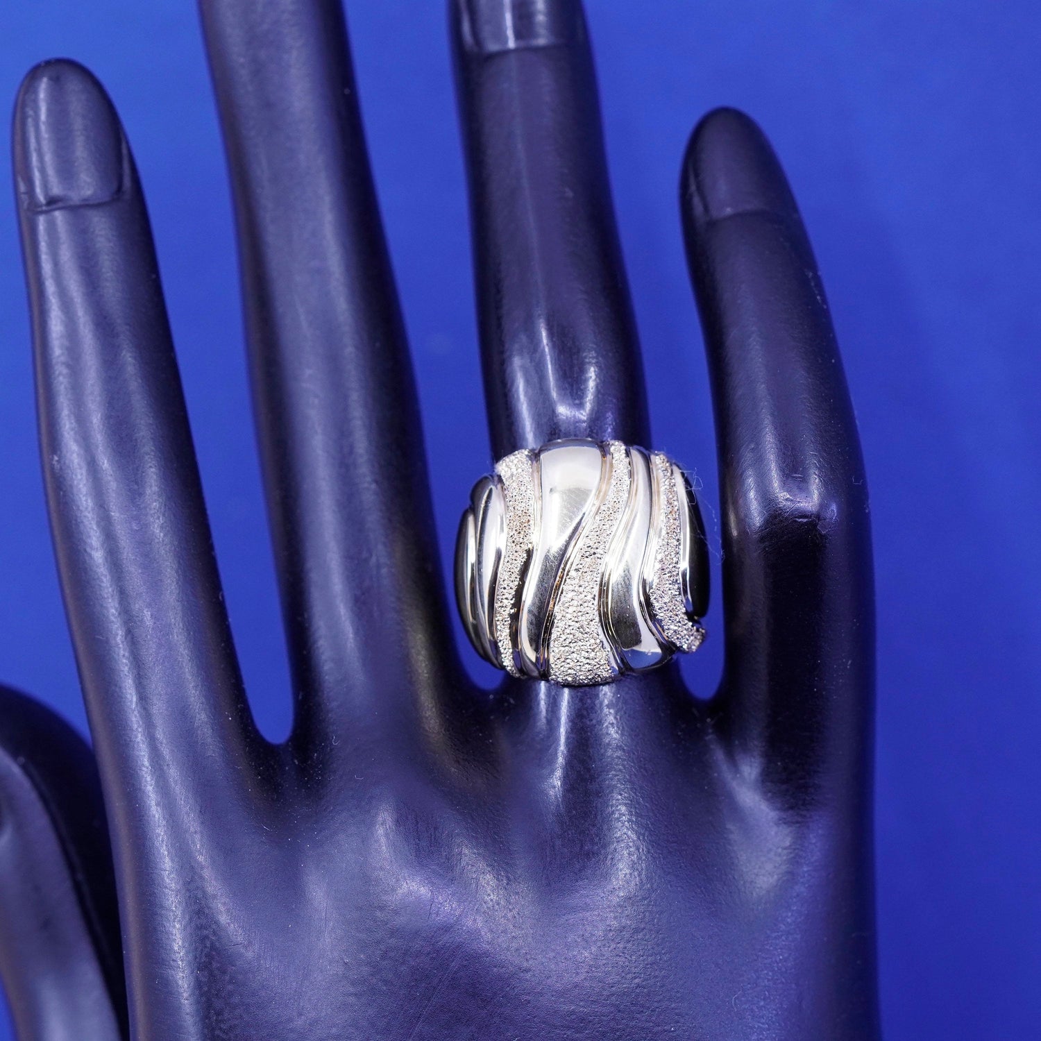 Size 6, vintage Itaor Italy vermeil gold filled sterling 925 silver handmade ring, wavy glittering band, stamped 925 Italy