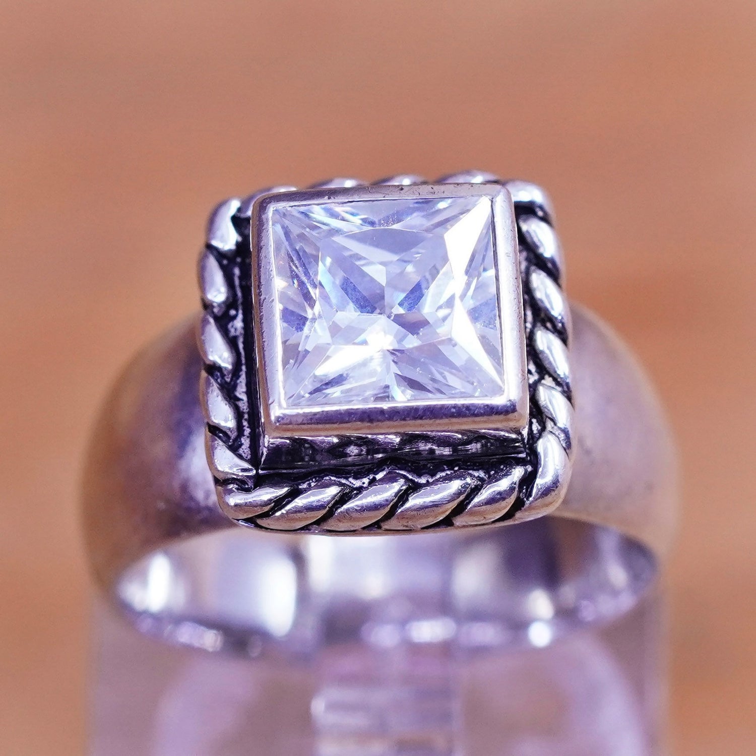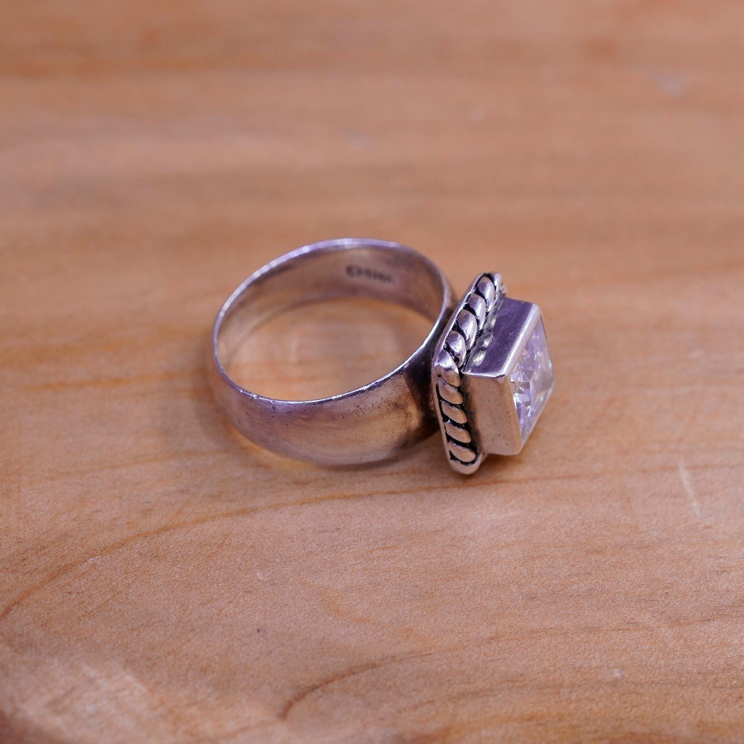Size 6, R0836. Framed Cubic Zirconia CZ Braided Ring by Silpada, sterling 925 Silver. Retired. Vintage