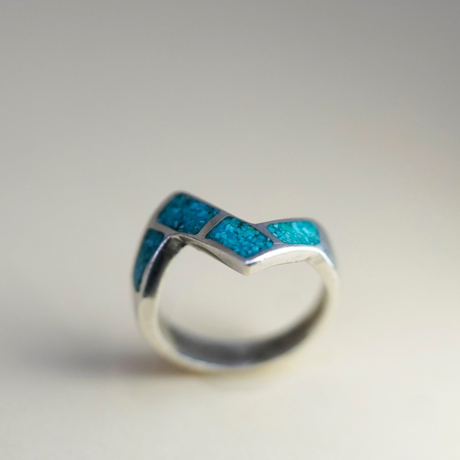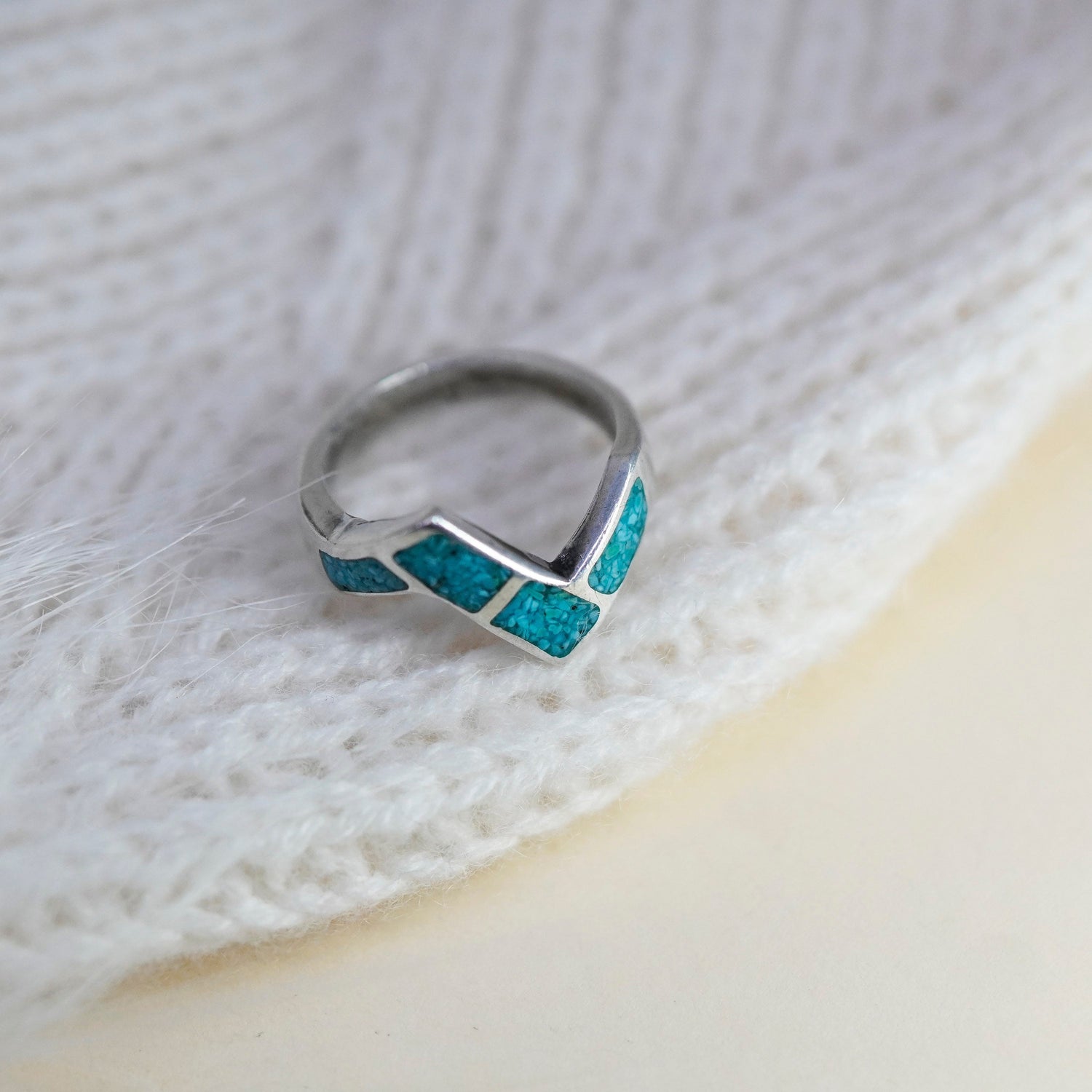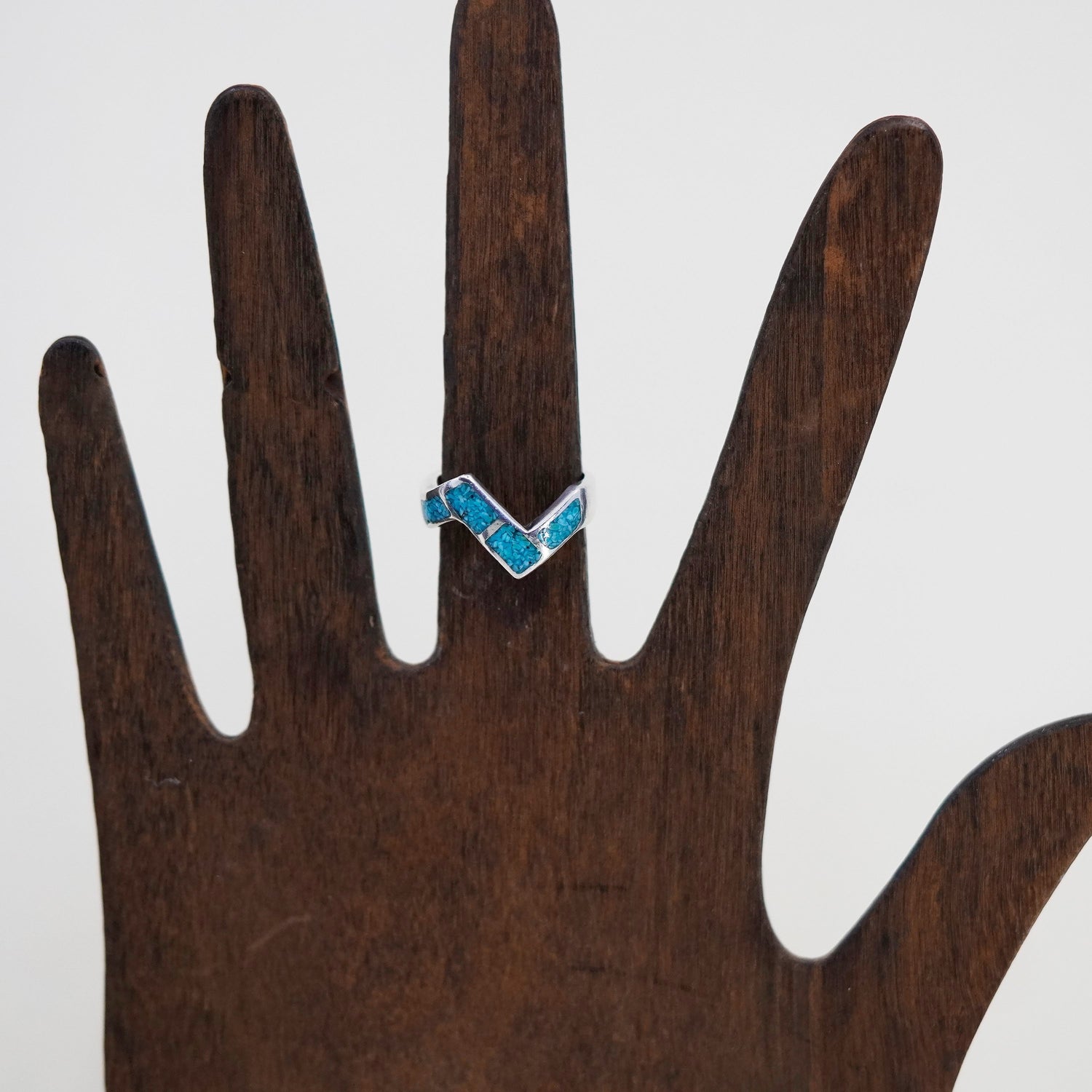 Size 6, vintage Sterling silver handmade ring, 925 zig zag band with turquoise inlay, Zuni, silver tested