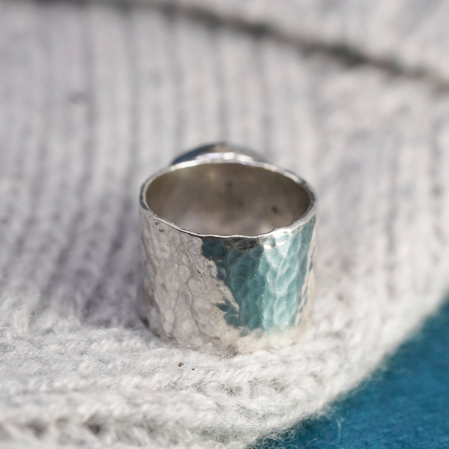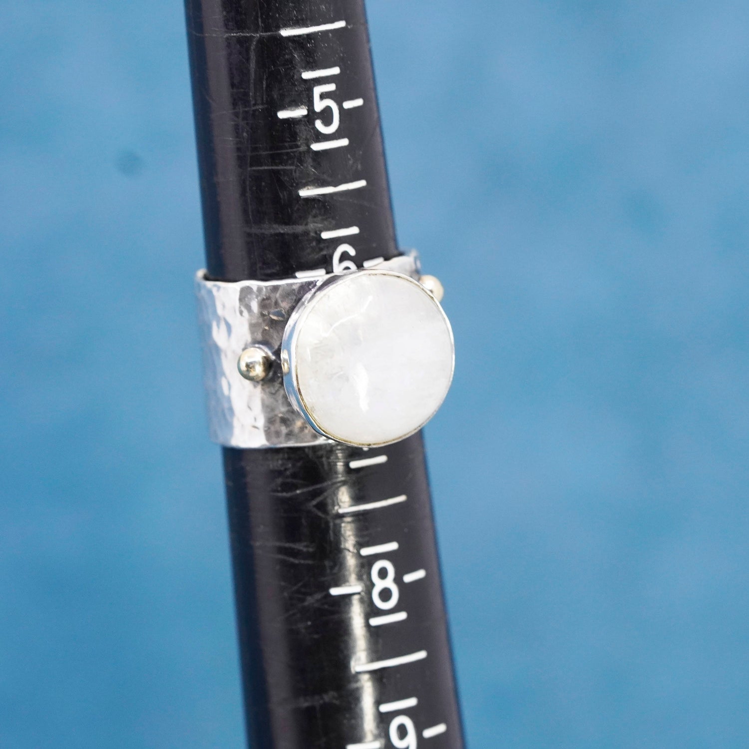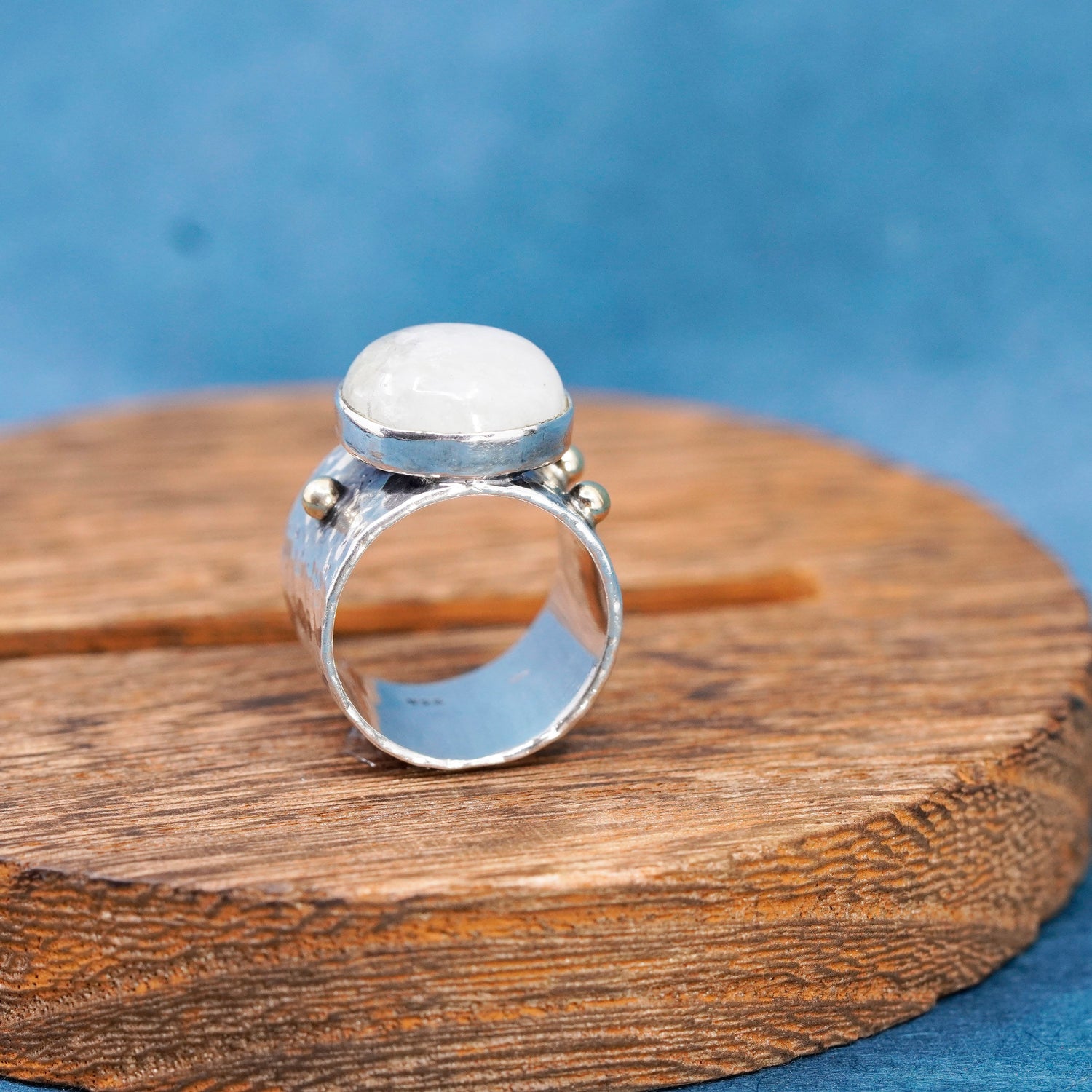 Size 6, vintage two tone 14K gold beads, Sterling 925 silver wide hammered ring with moonstone, stamped 925