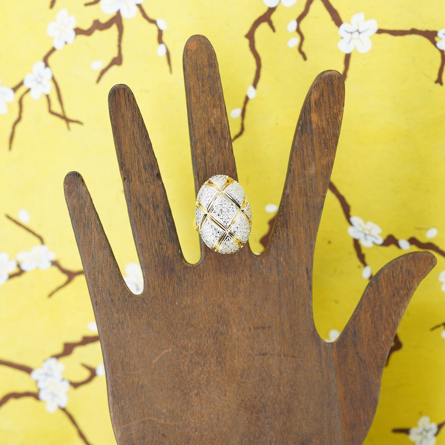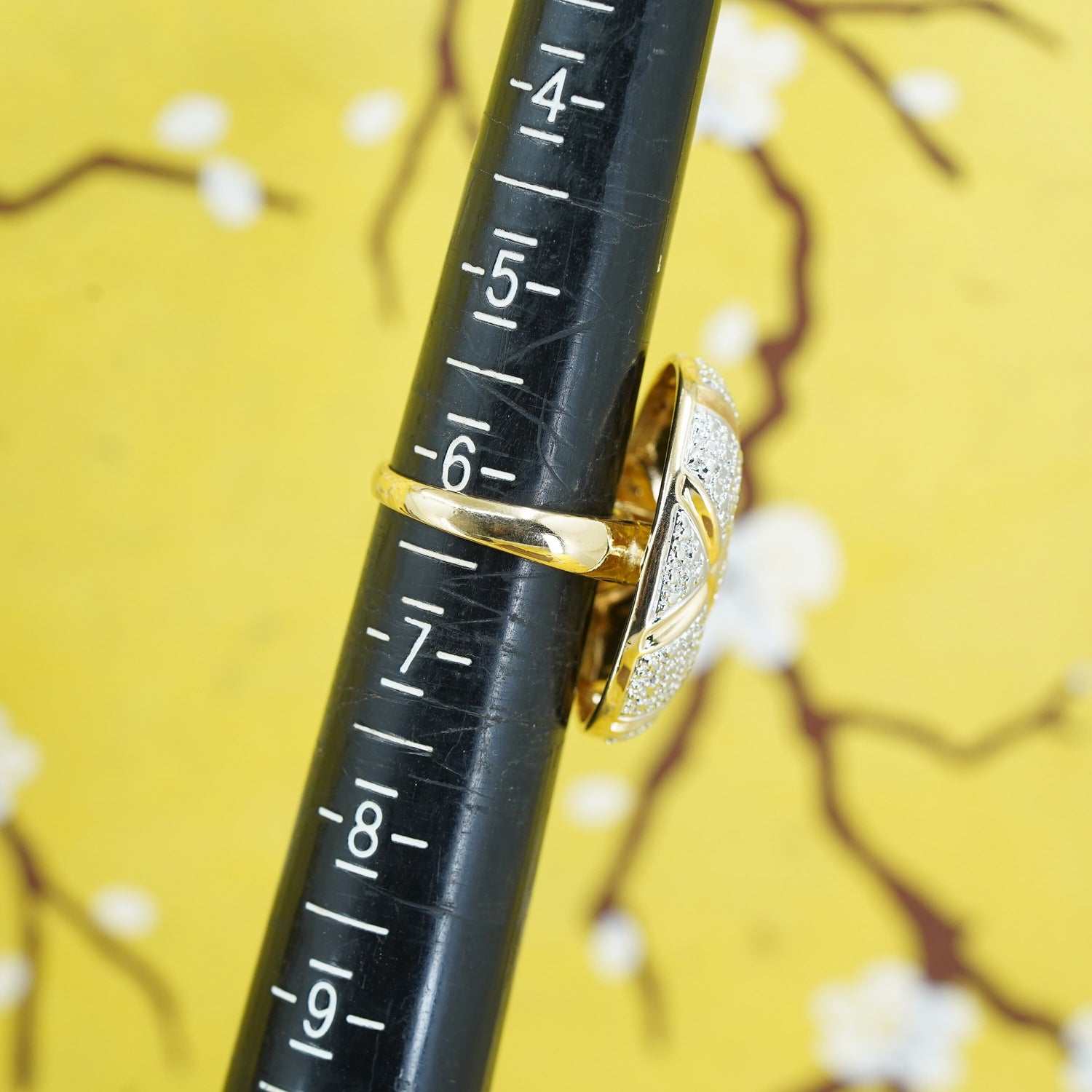 Size 6, two tone gold Sterling silver 925 cocktail filigree oval ring W diamond