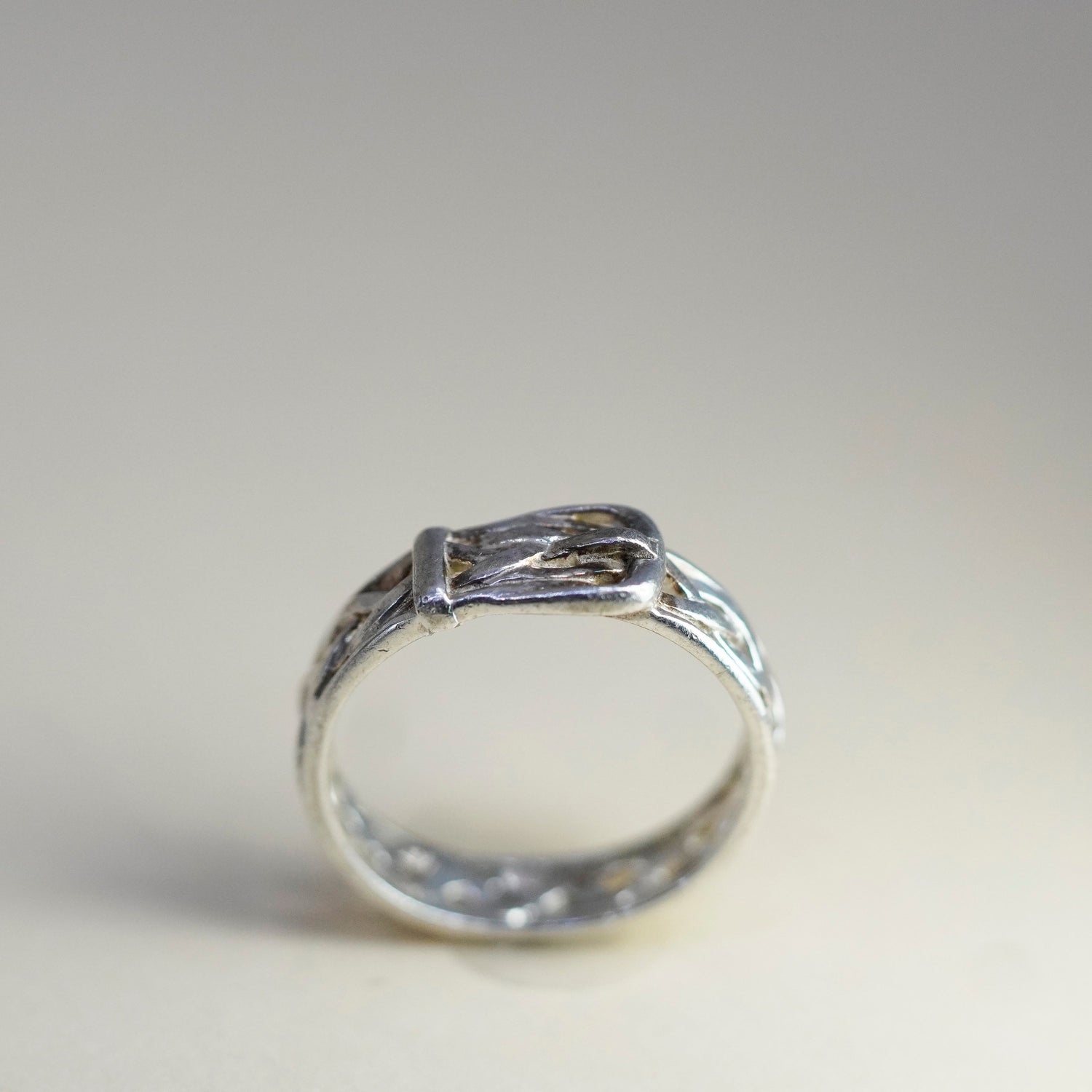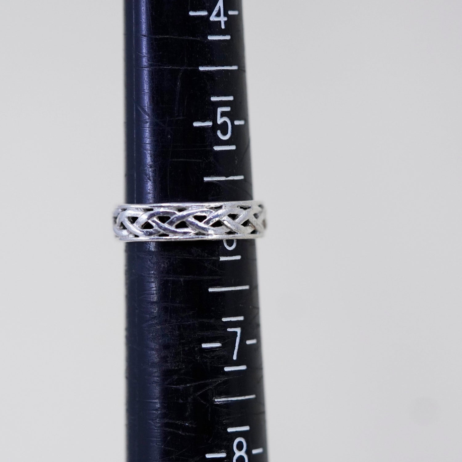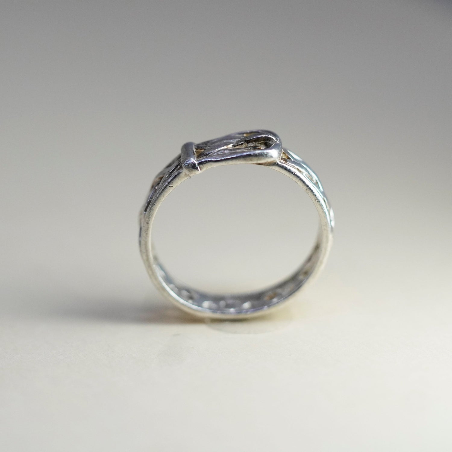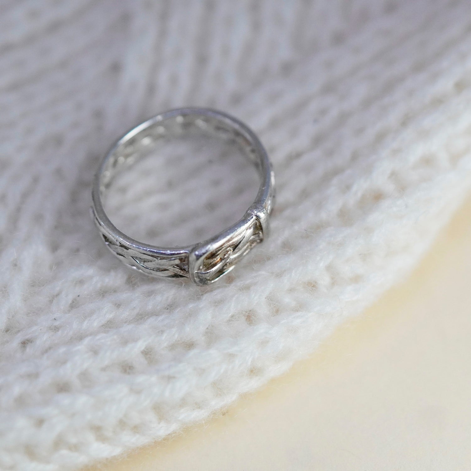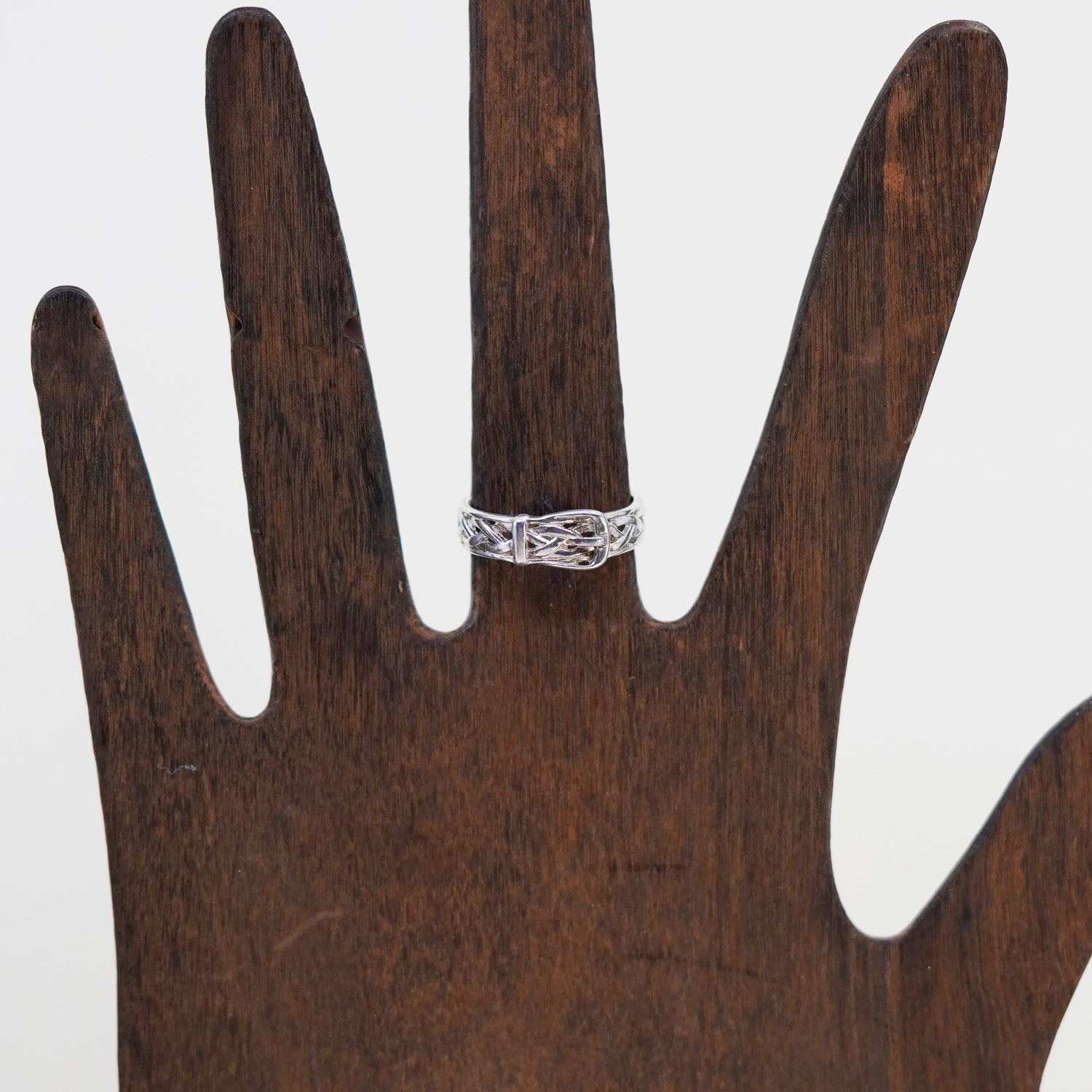 Size 6, Vintage sterling silver handmade ring, 925 belt filigree band, stamped 925