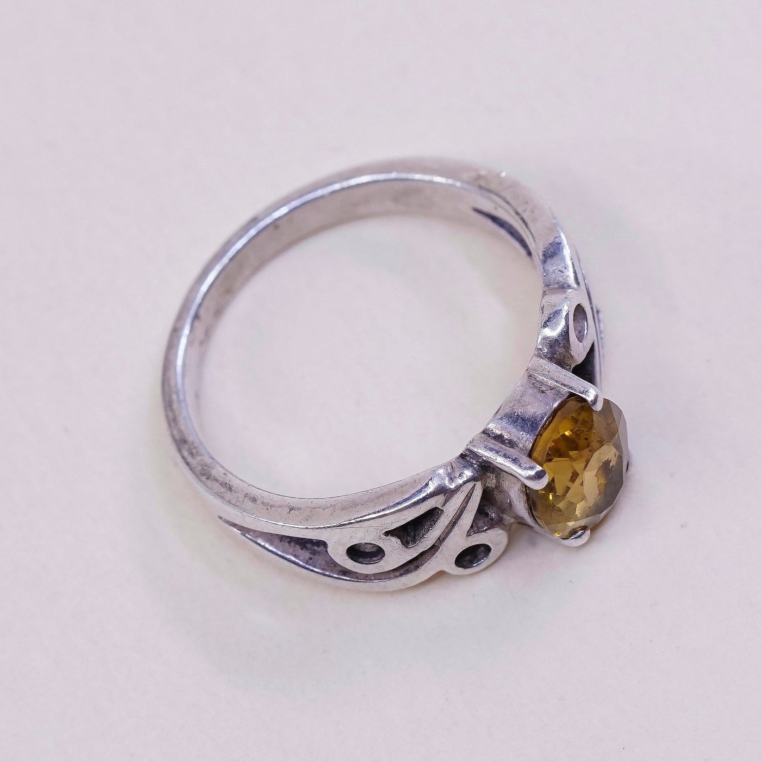 Size 6, vintage Sterling silver handmade ring, filigree 925 w/ citrine