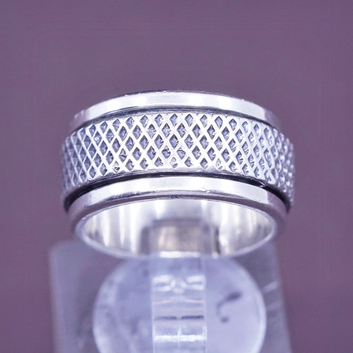 Size 6, vintage Sterling silver prayer ring, solid 925 silver spinner band, stamped 925 mexico