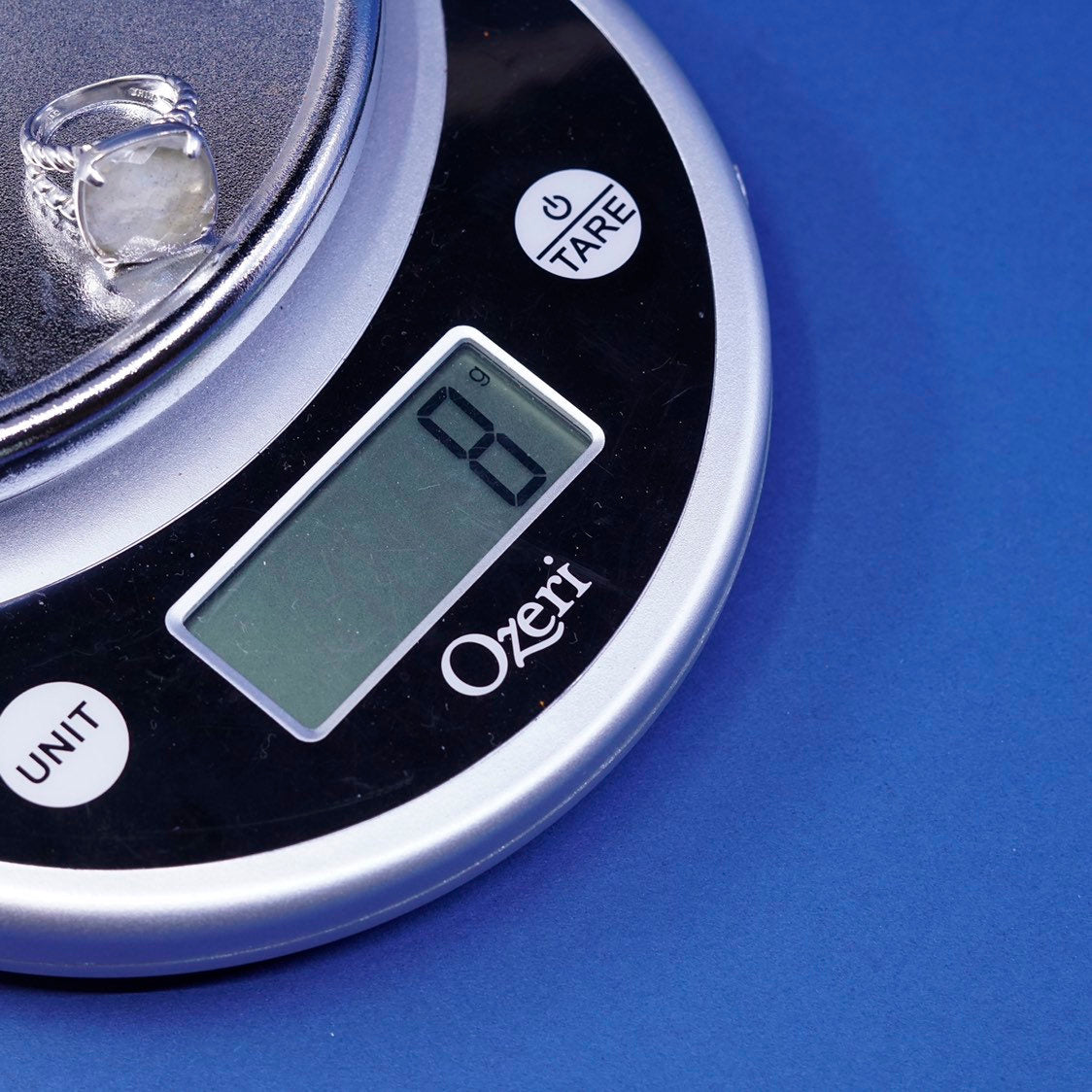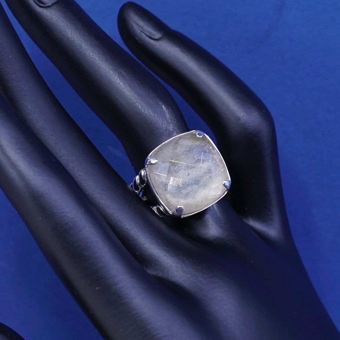 Size 6, vintage Sterling silver handmade ring, solid 925 silver with checker cut moonstone, stamped 925 China A