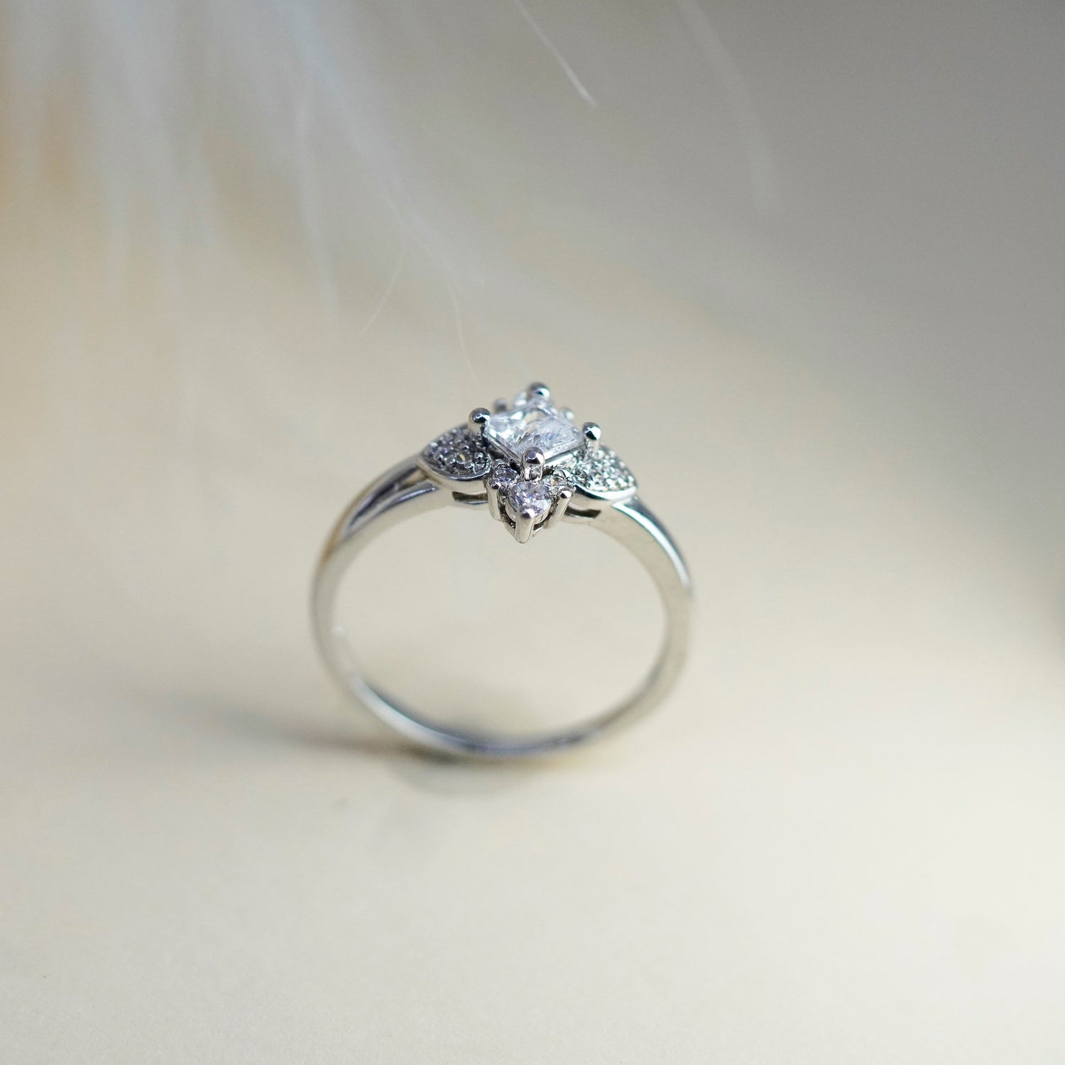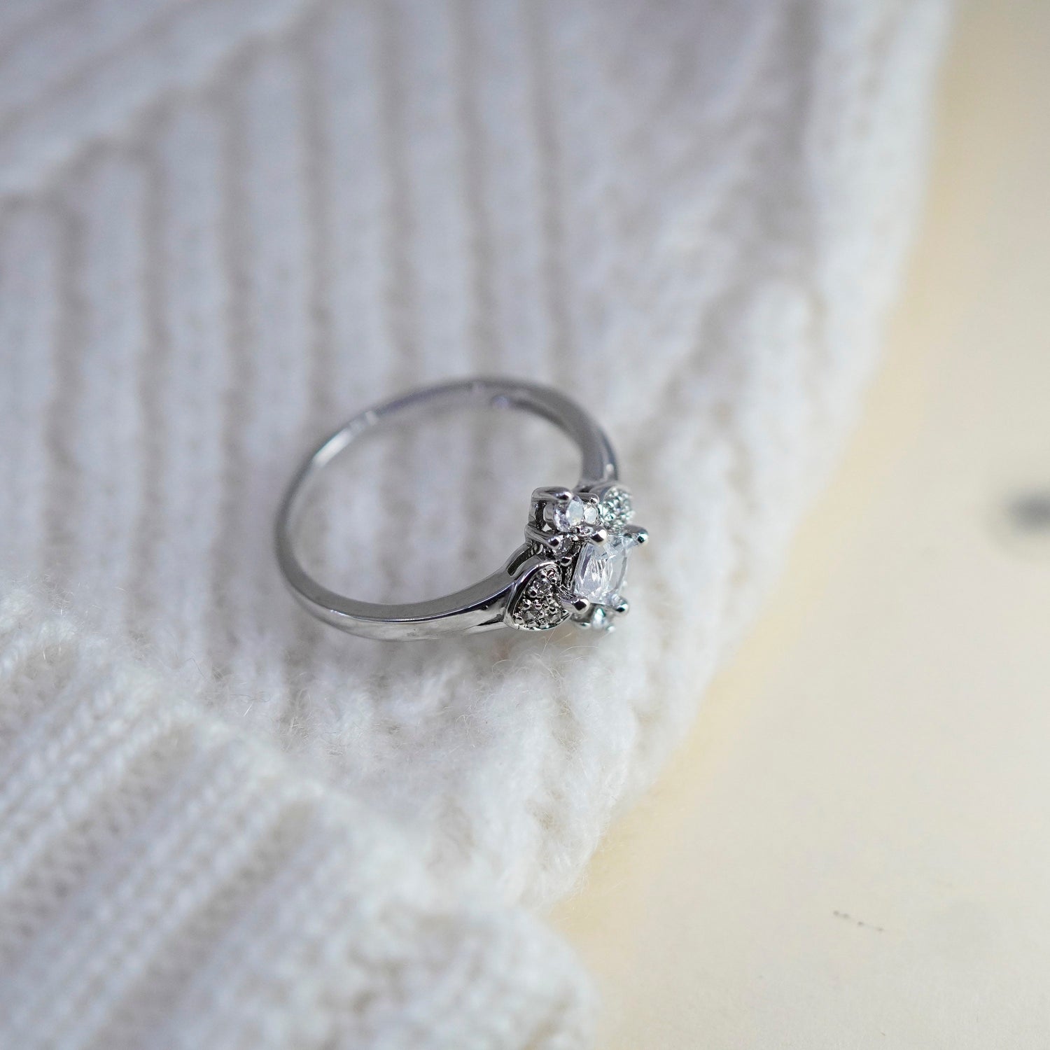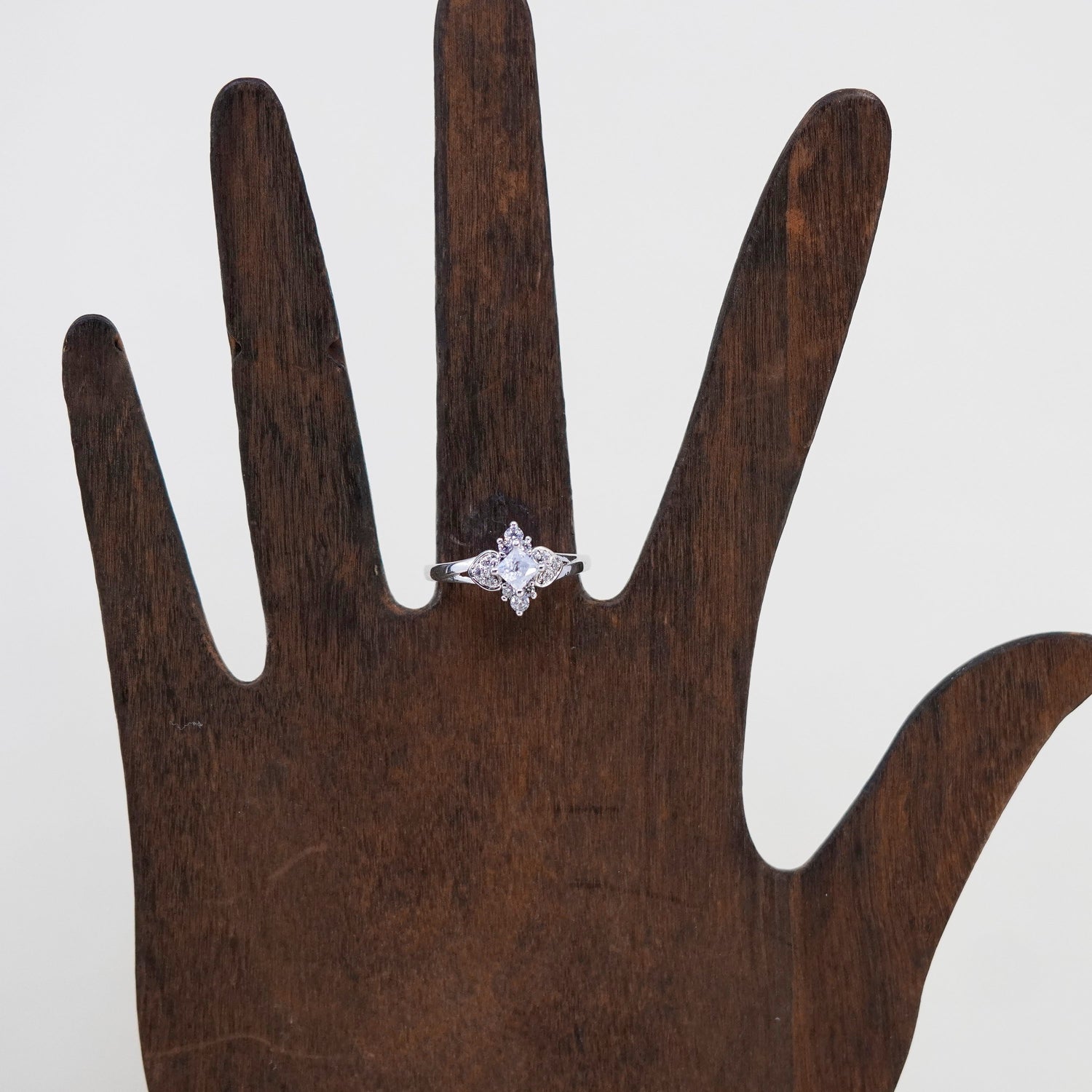 Size 7.25, vintage jewelry, sterling 925 silver cluster crystal engagement ring