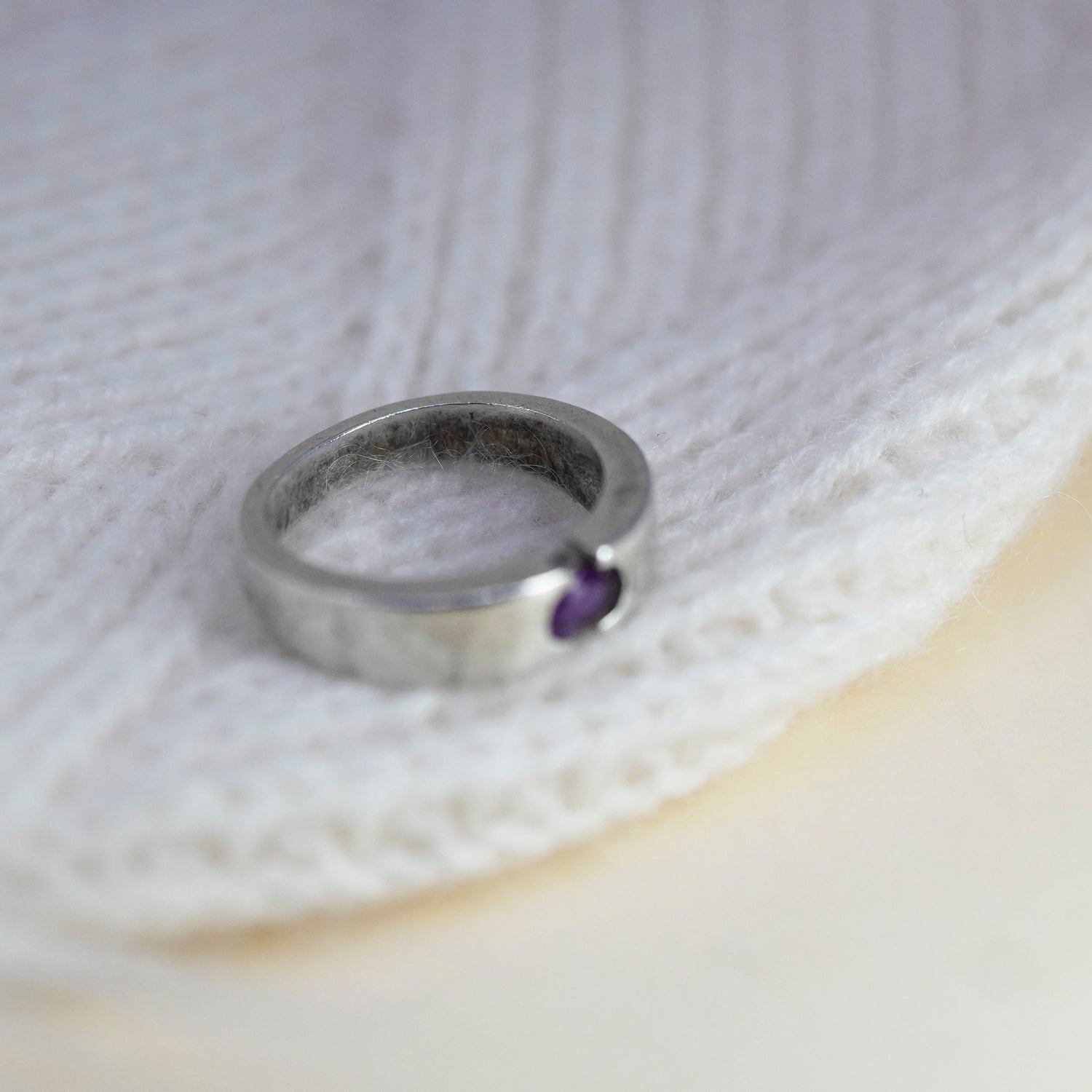 Size 7.25, vintage Sterling 925 silver handmade stackable ring with amethyst