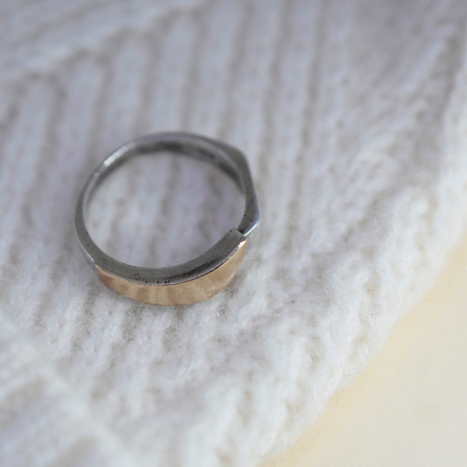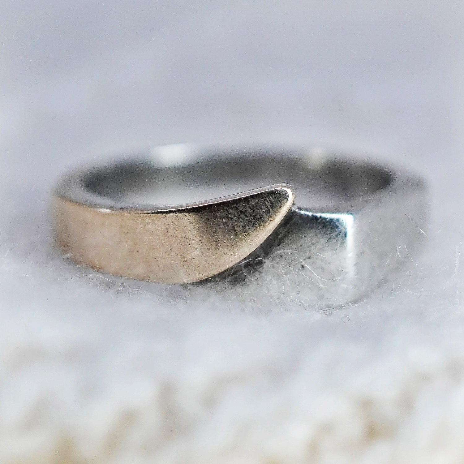 Size 7.25, vtg two tone modern 14K with sterling 925 silver handmade ring band