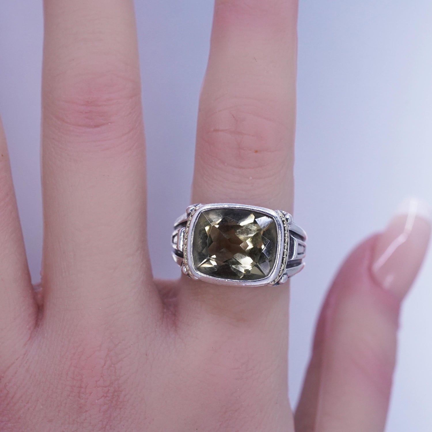 Size 7.5, Fred Samuel Benham BJC Sterling Silver peridot Ring with 18K beads