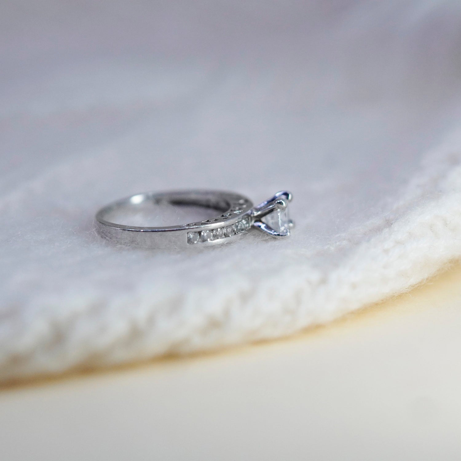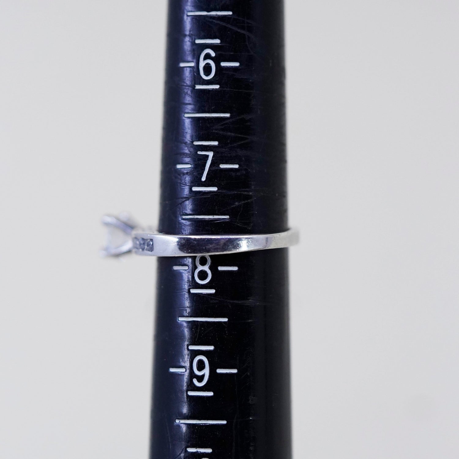 Size 7.5, vintage sterling 925 silver ring with round CZ, stackable engagement band, Stamped 925