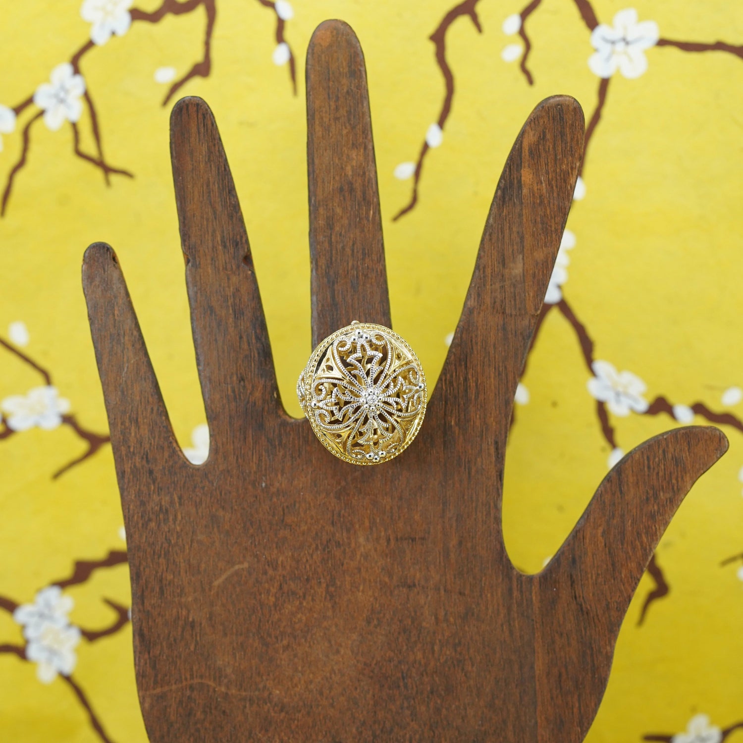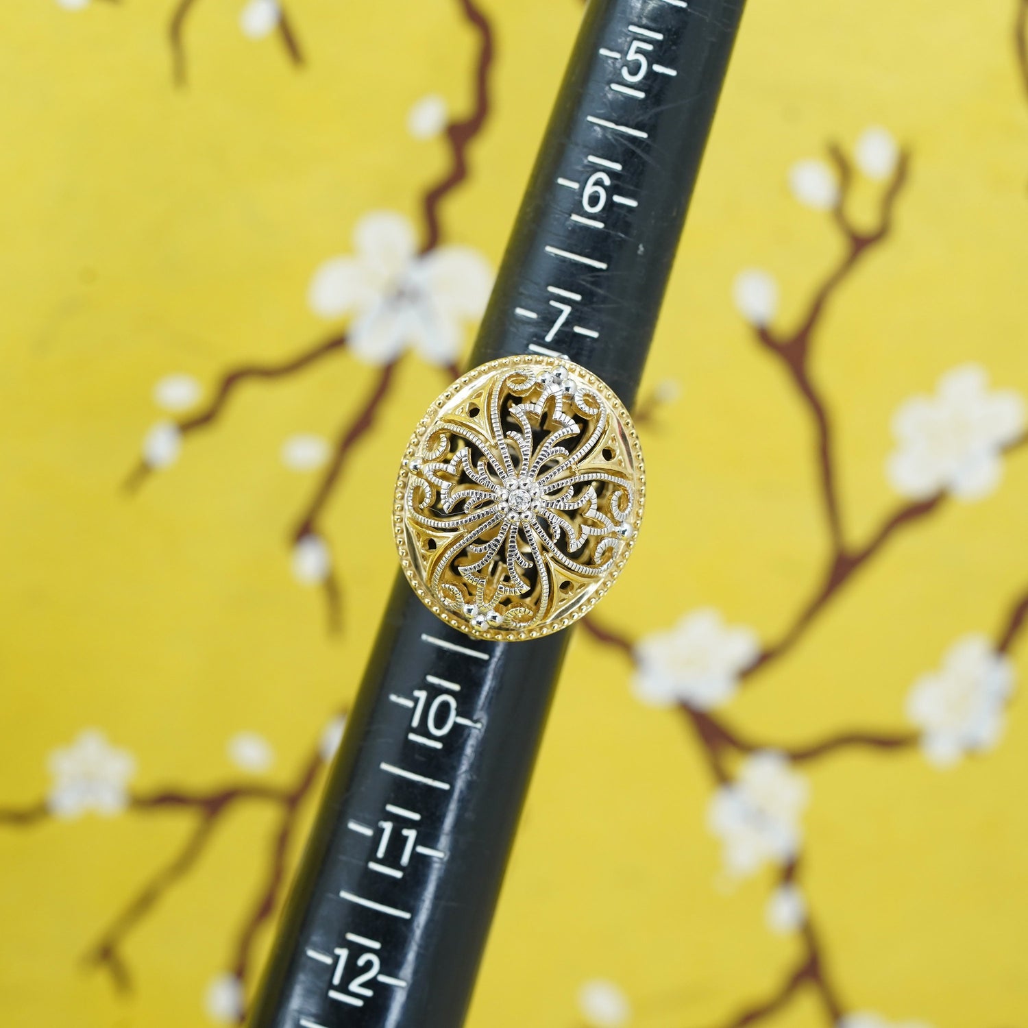 Size 7.75, two tone Sterling silver 925 cocktail filigree crown ring diamond