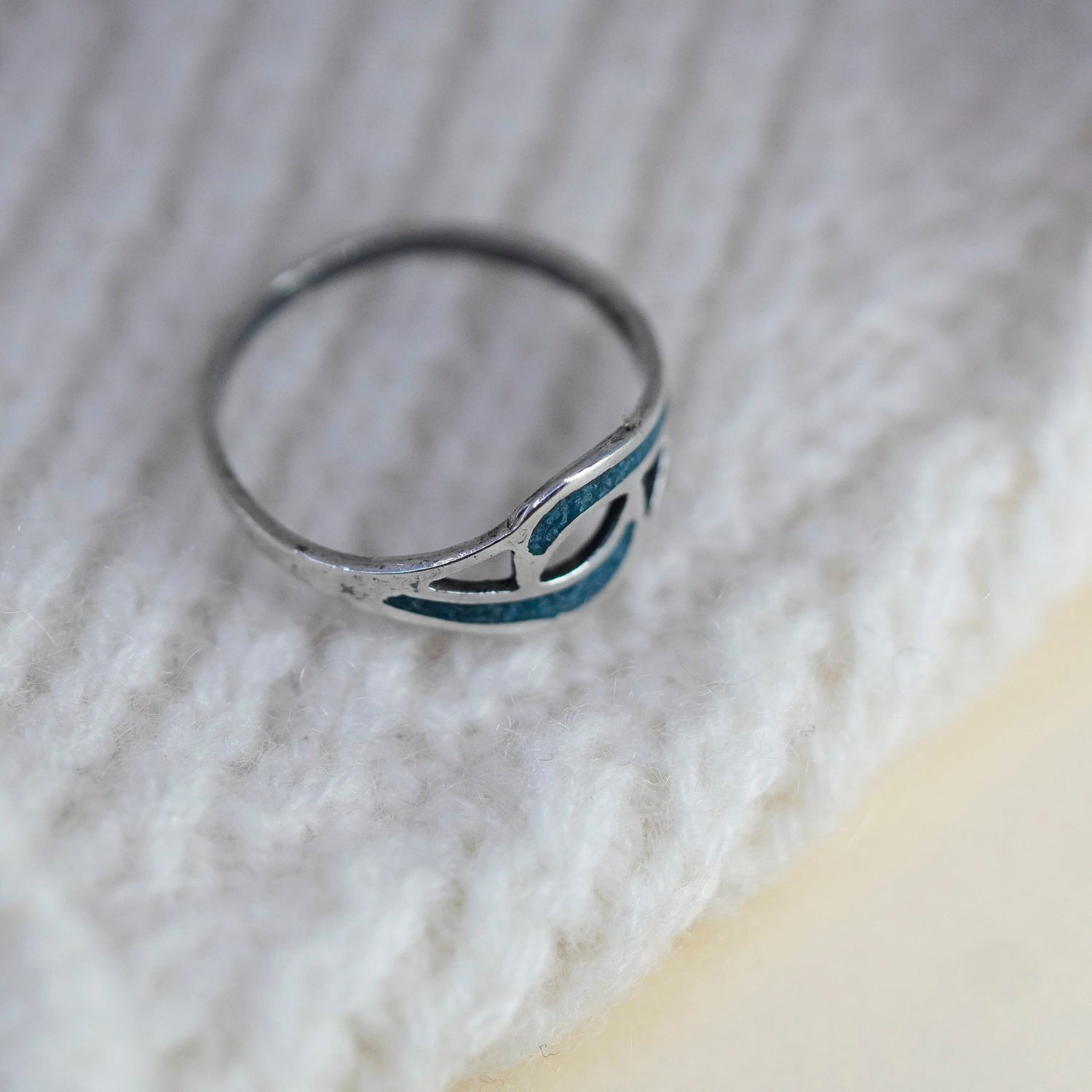 Size 7.75, vintage Sterling silver handmade ring, 925 band with turquoise inlay