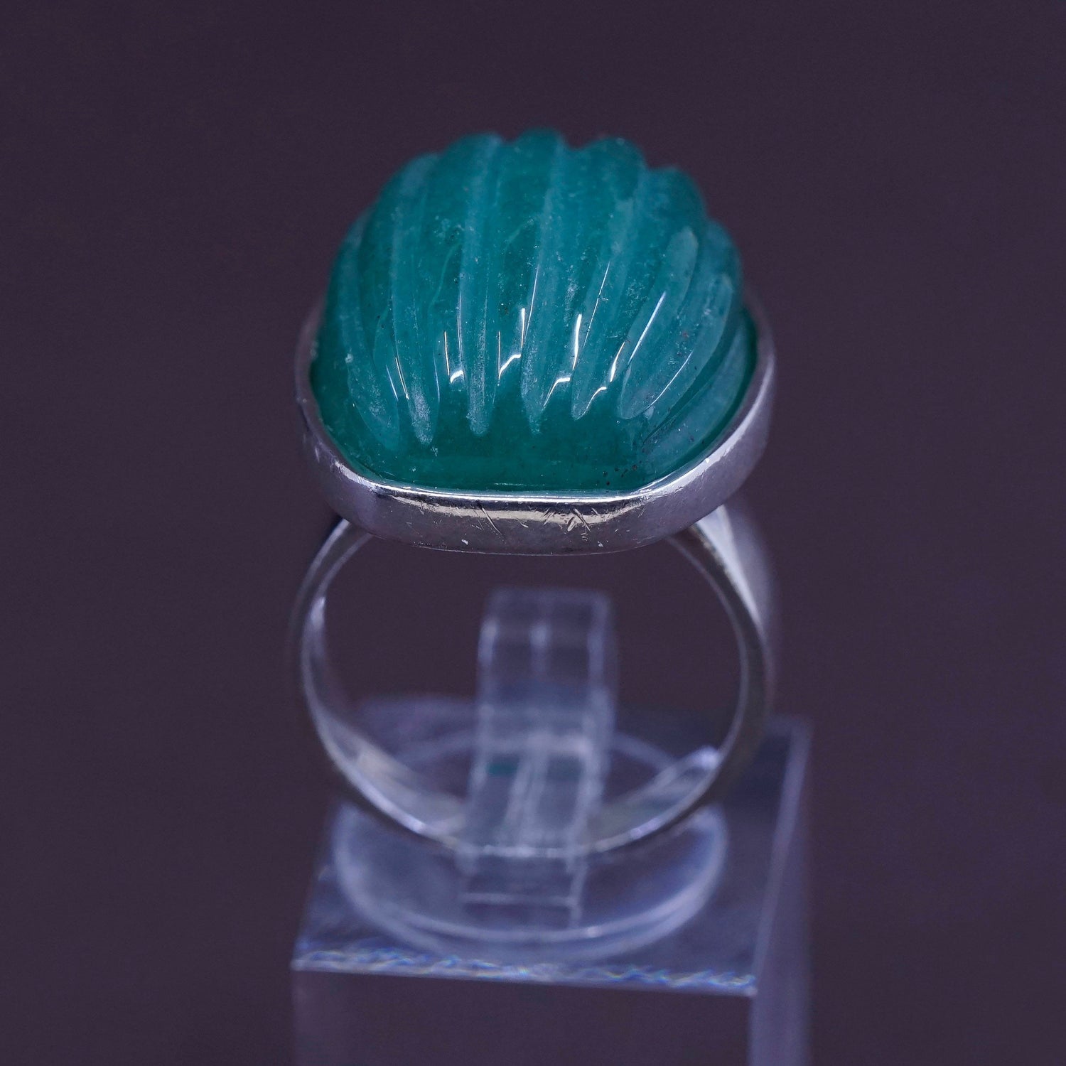 Size 7, ARK Sterling silver ring, 925 statement ring with jade