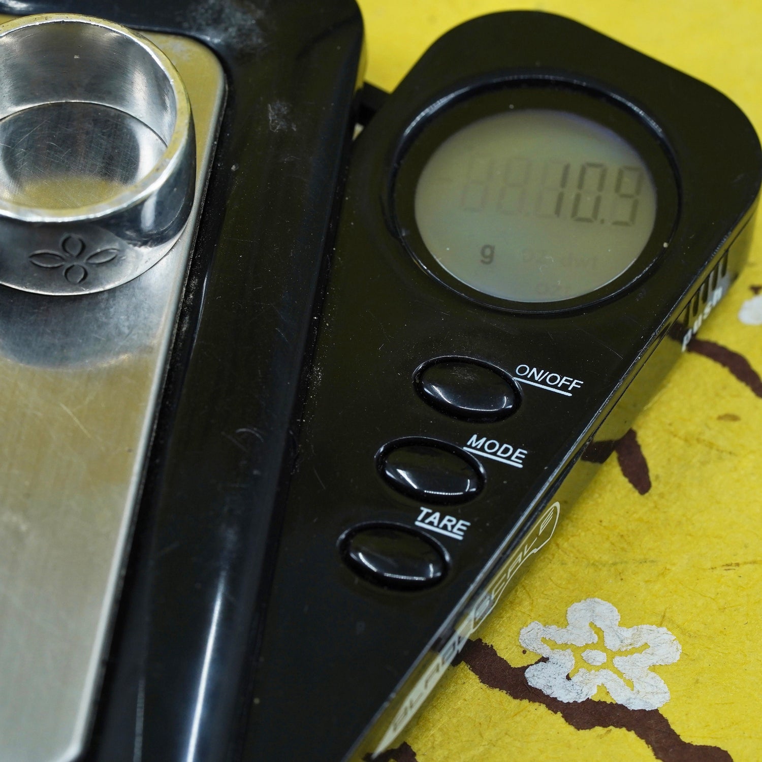 Size 7, modern Sterling 925 silver handmade wide ring with 14K gold inlay, stamped 925 14K