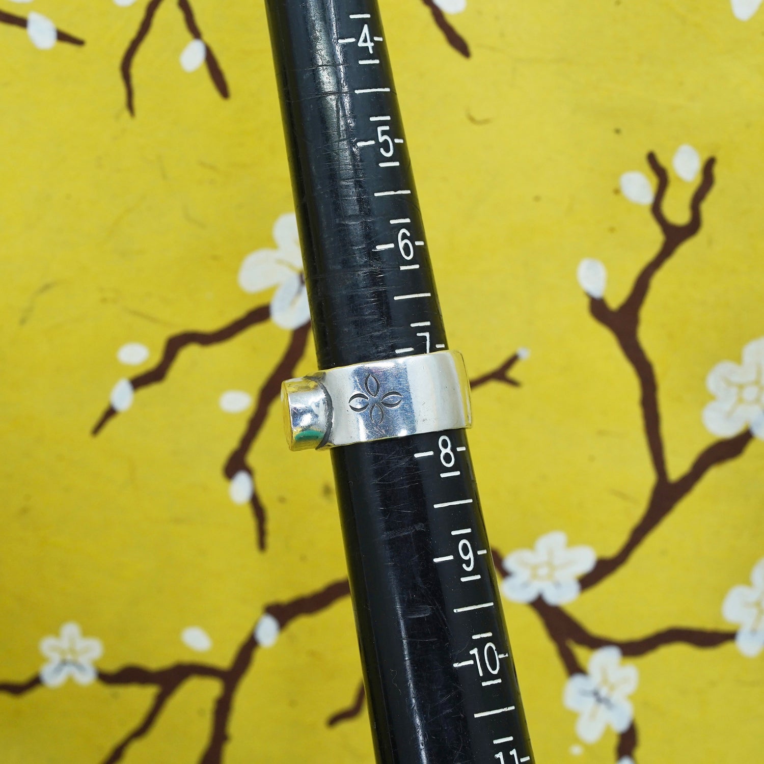 Size 7, modern Sterling 925 silver handmade wide ring with 14K gold inlay