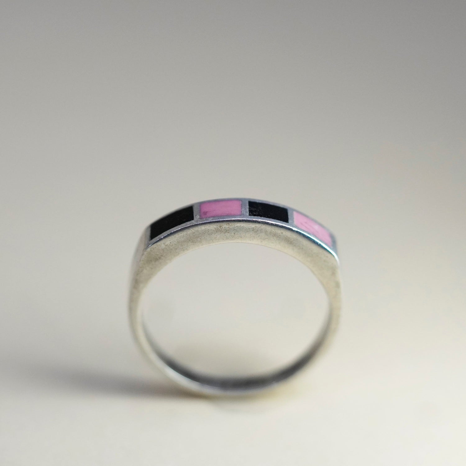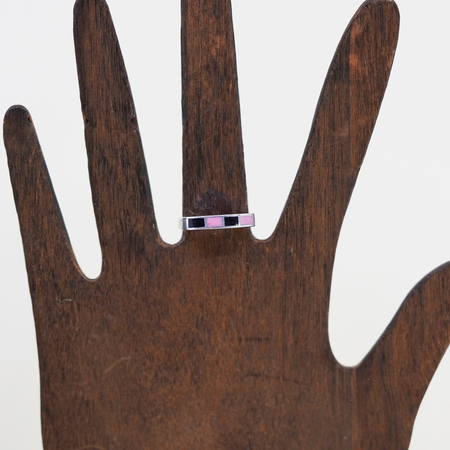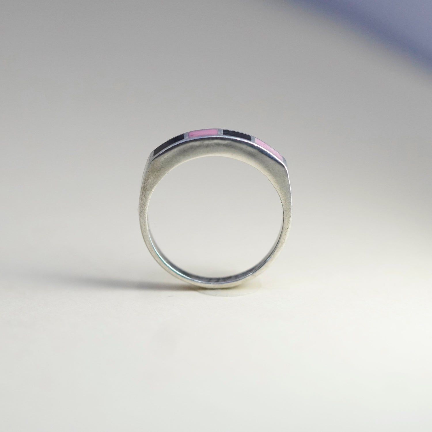 Size 7, Vintage relios carolyn pollack Southwestern sterling 925 silver handmade ring with obsidian and pink stone, stamped 925 CP