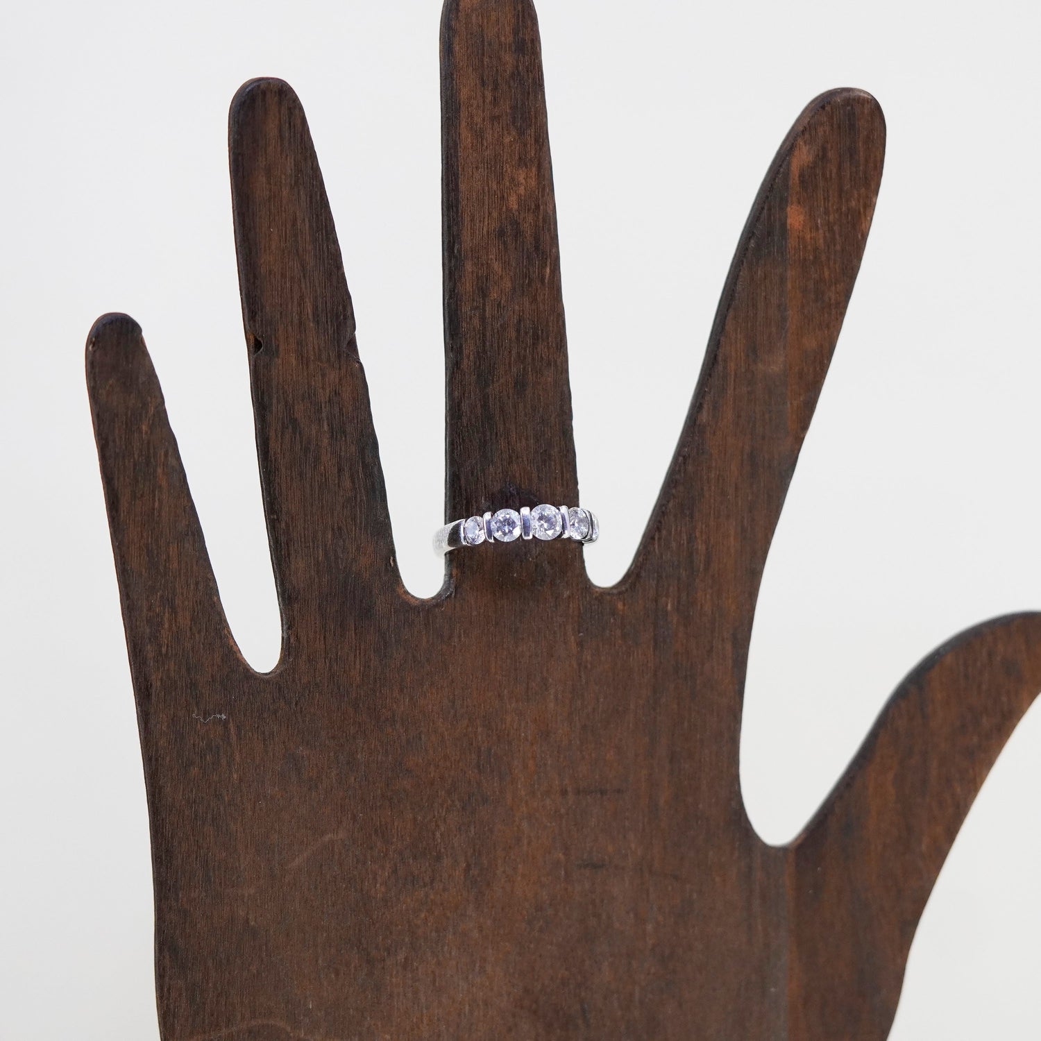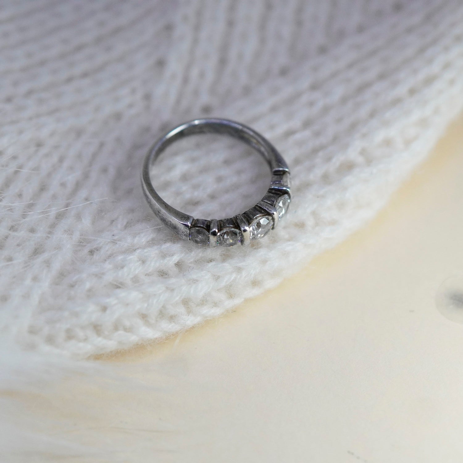 Size 7, vintage sterling 925 silver ring with cluster round CZ, stackable wedding band, Stamped 925