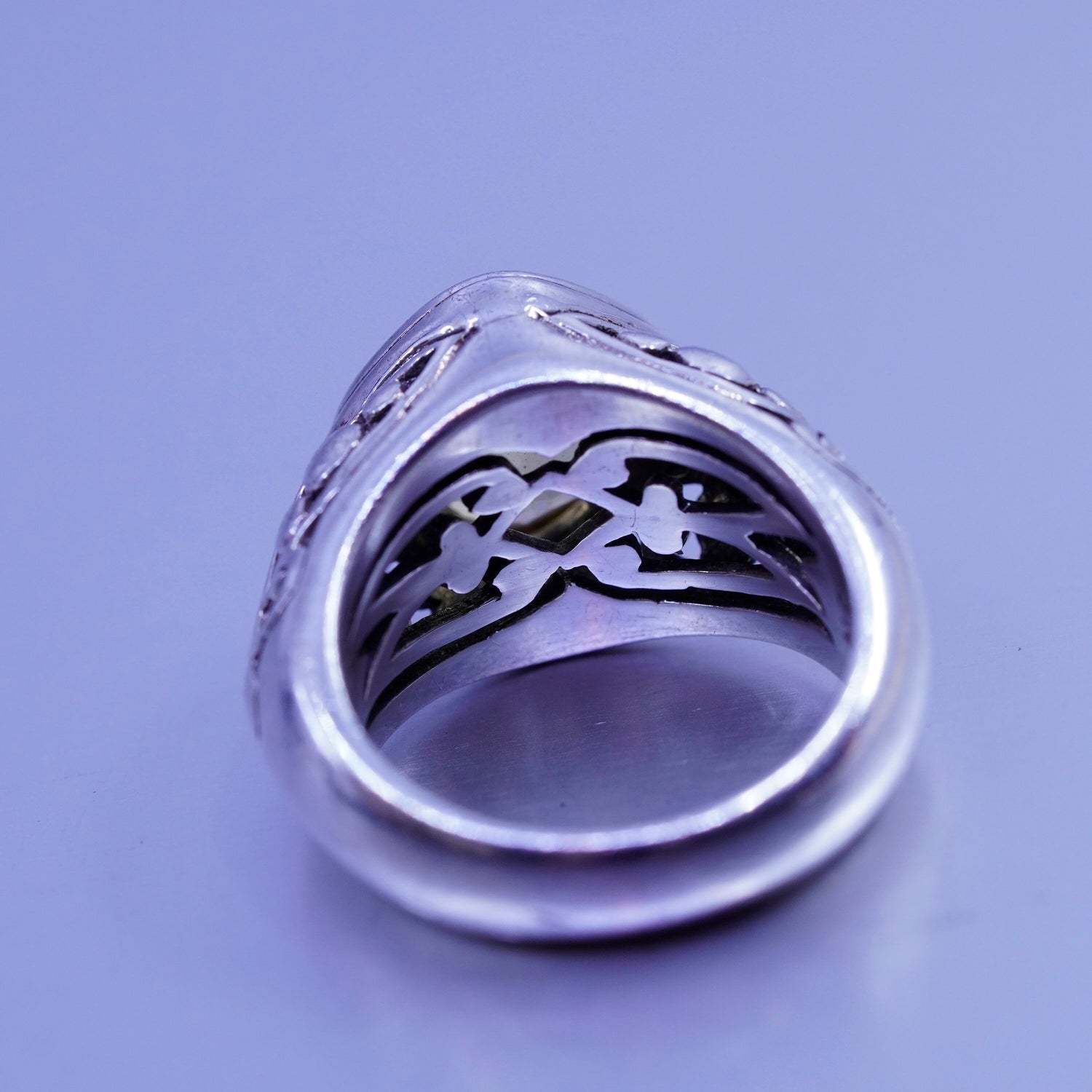 Size 7 vintage designer Sterling 925 silver handmade filigree ring citrine Bali