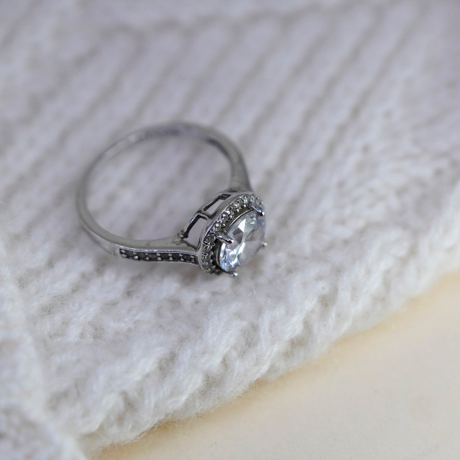 Size 7, vintage jewelry, sterling 925 silver cluster crystal engagement ring