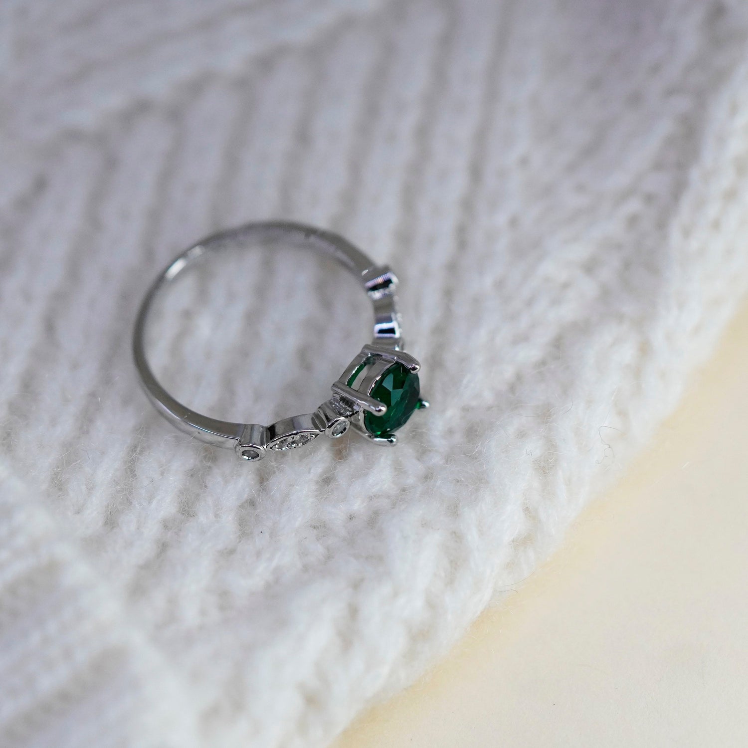 Size 7, Vintage sterling 925 silver handmade ring with peridot
