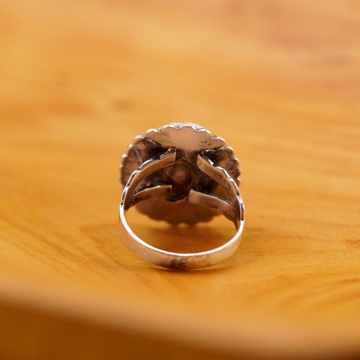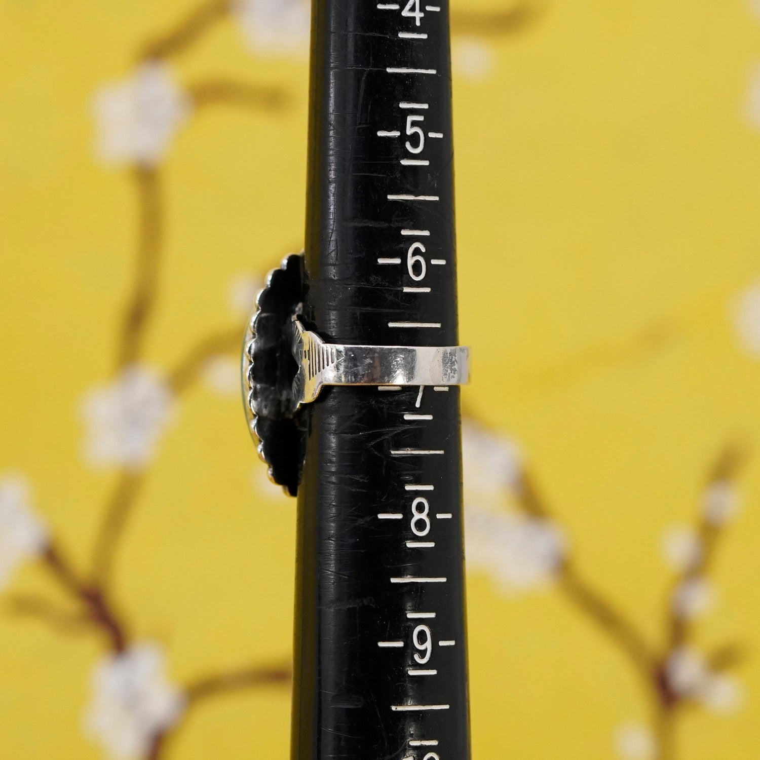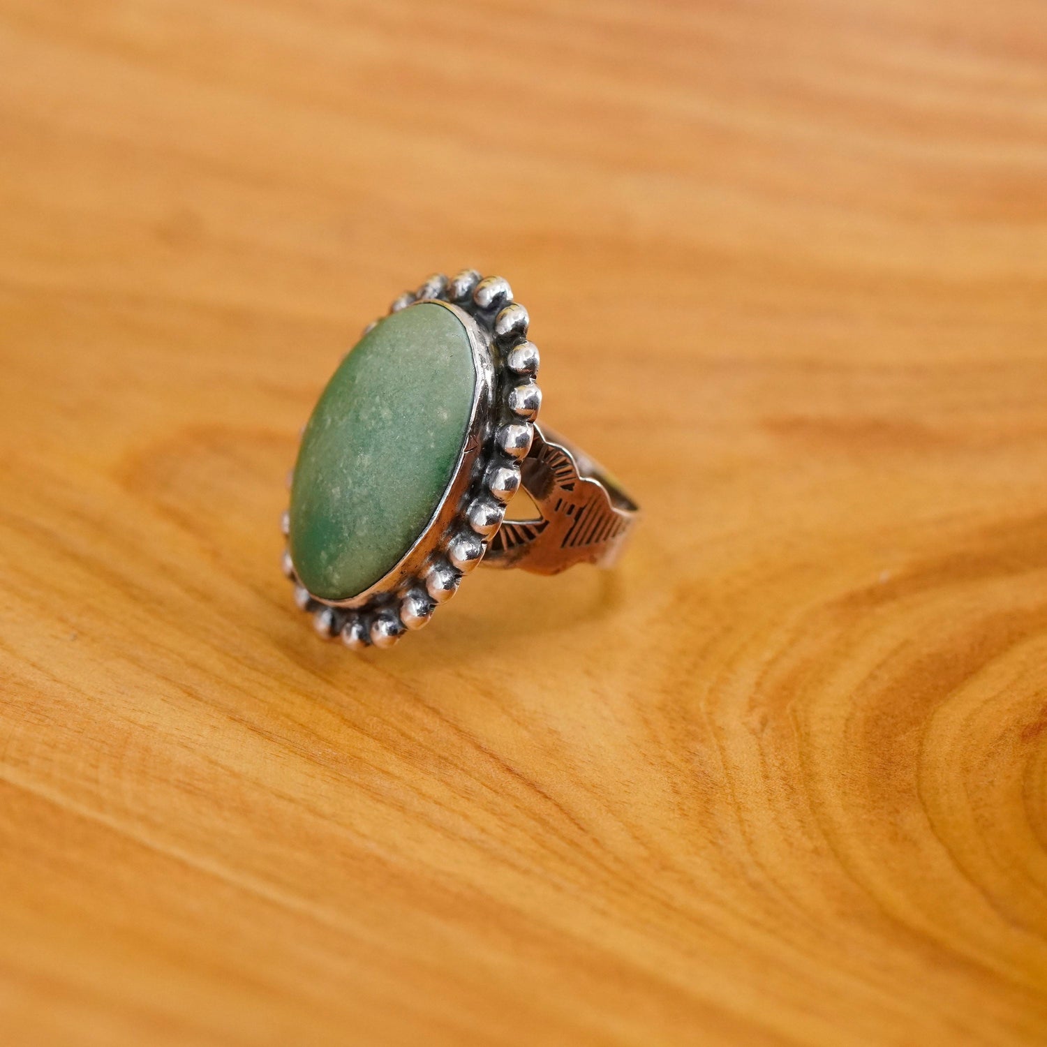 Size 7, vintage Sterling 925 silver handmade ring with turquoise and beads around, stamped sterling
