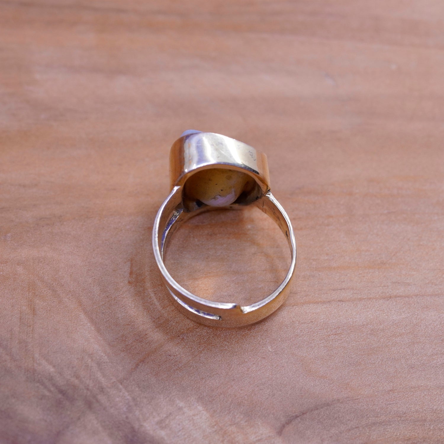 Size 7, vintage vermeil gold over Sterling 925 silver modern ring with opal, stamped Sterling JT BAR