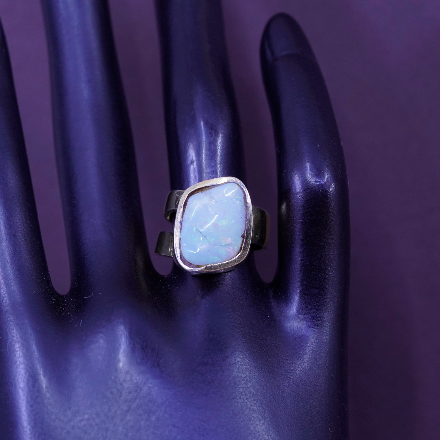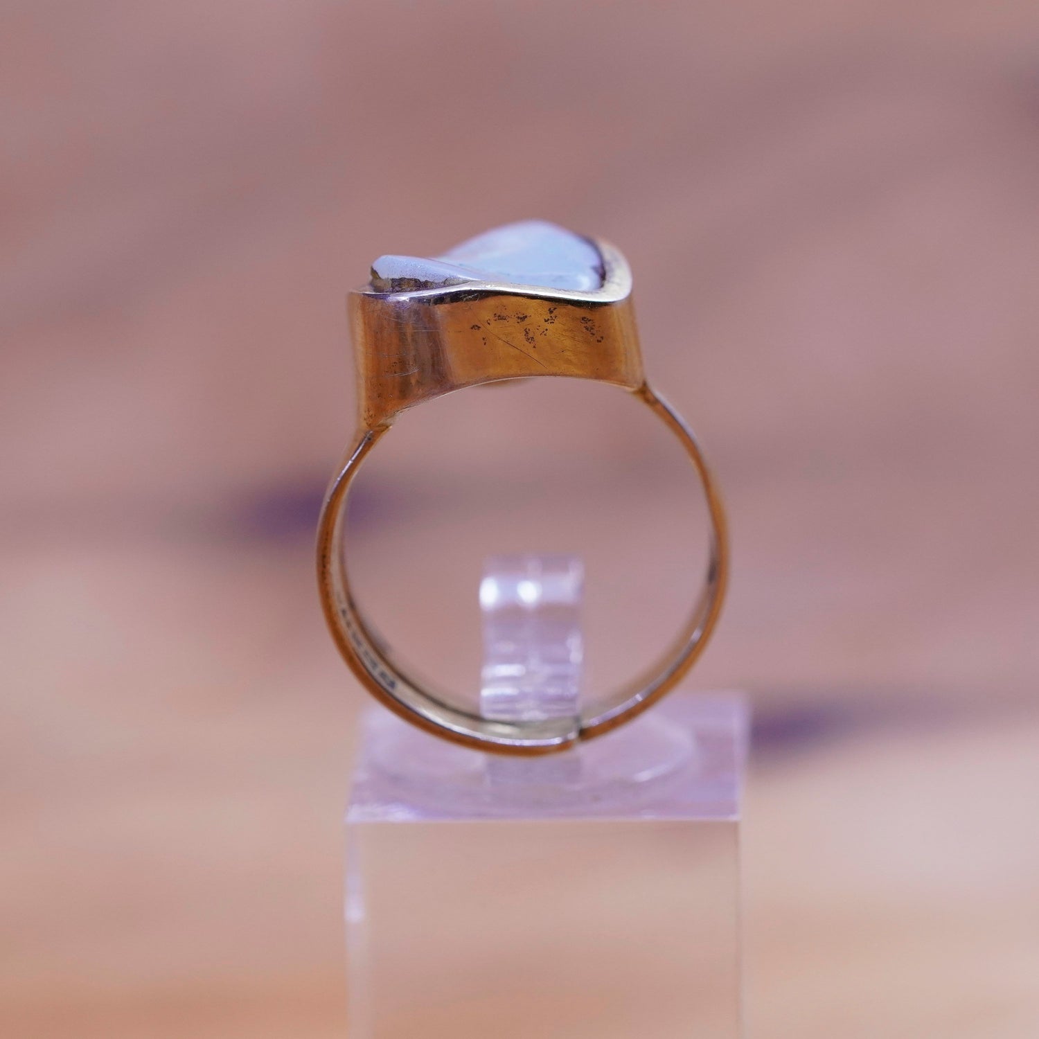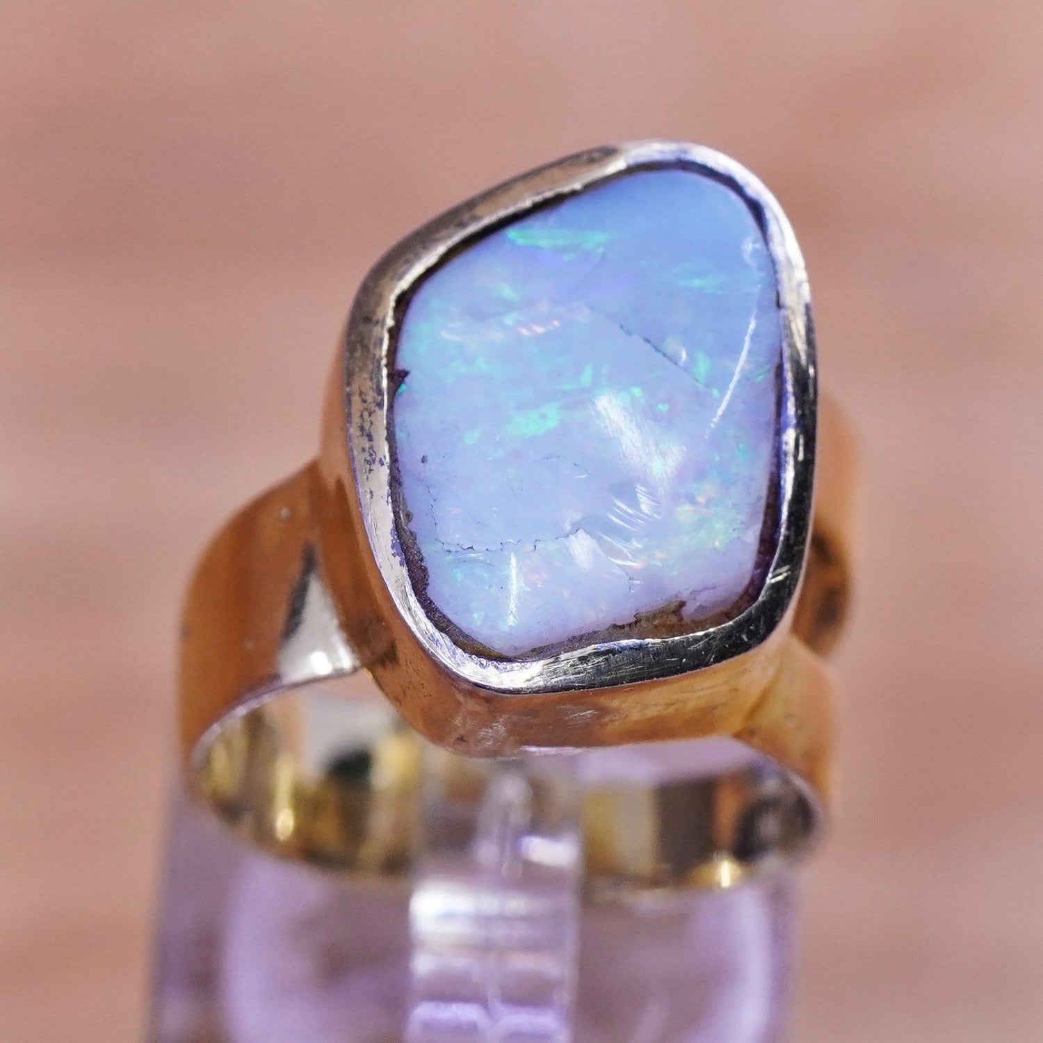Size 7, vintage vermeil gold over Sterling 925 silver modern ring with opal
