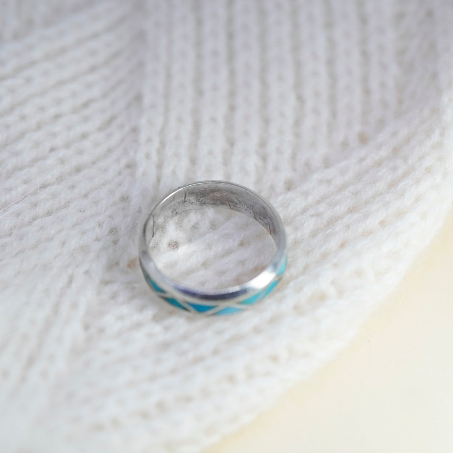 Size 8.5, vintage Sterling silver handmade ring, 925 zig zag band with turquoise inlay, Zuni, silver tested