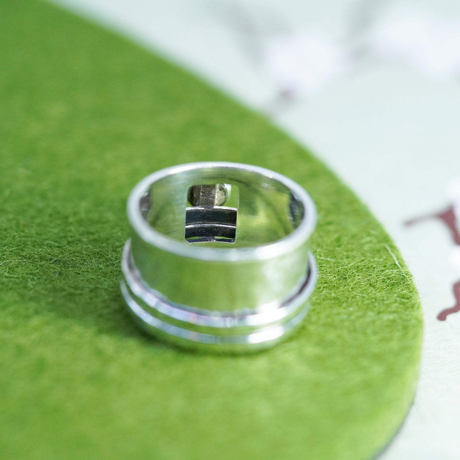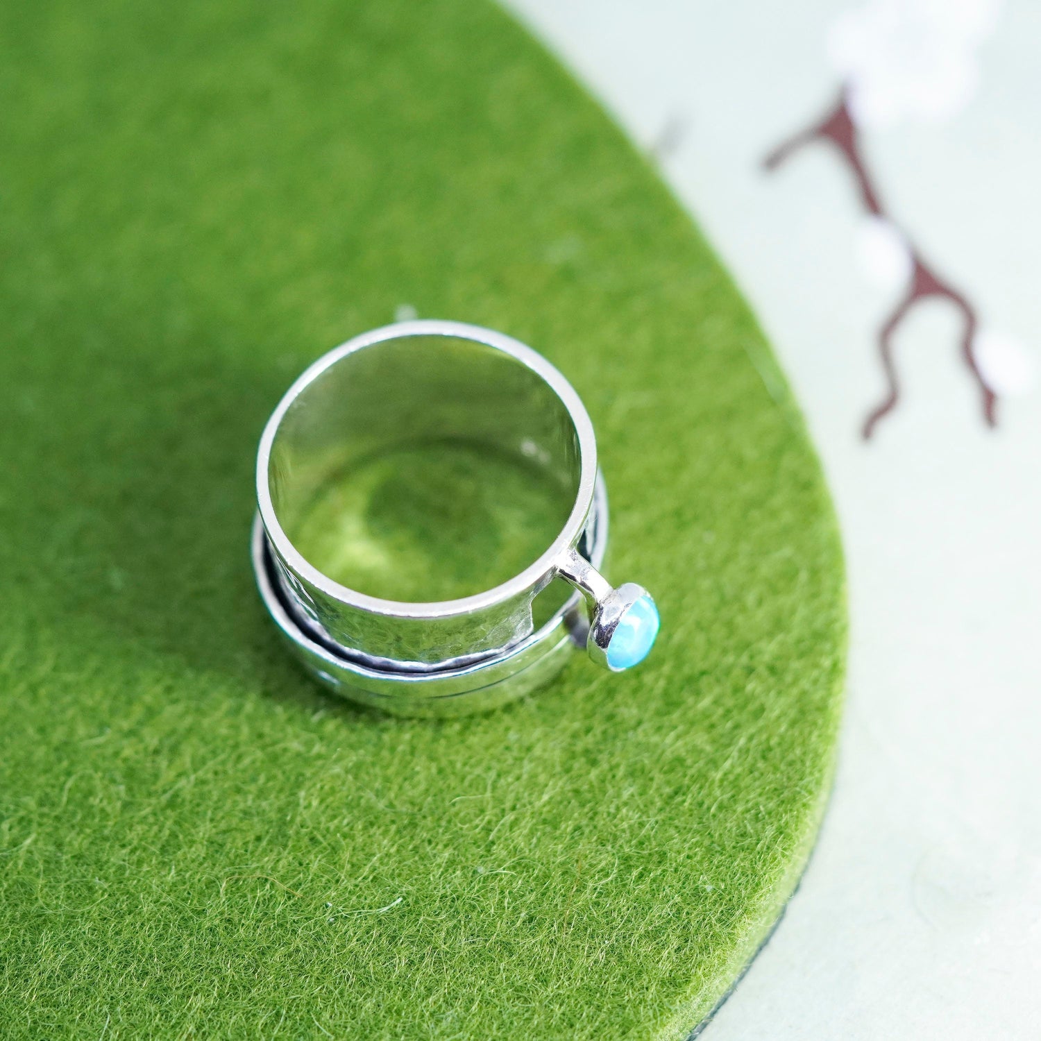 Size 8.5, VTG Silpada R0897 Sterling 925 silver spinner ring, band with opal
