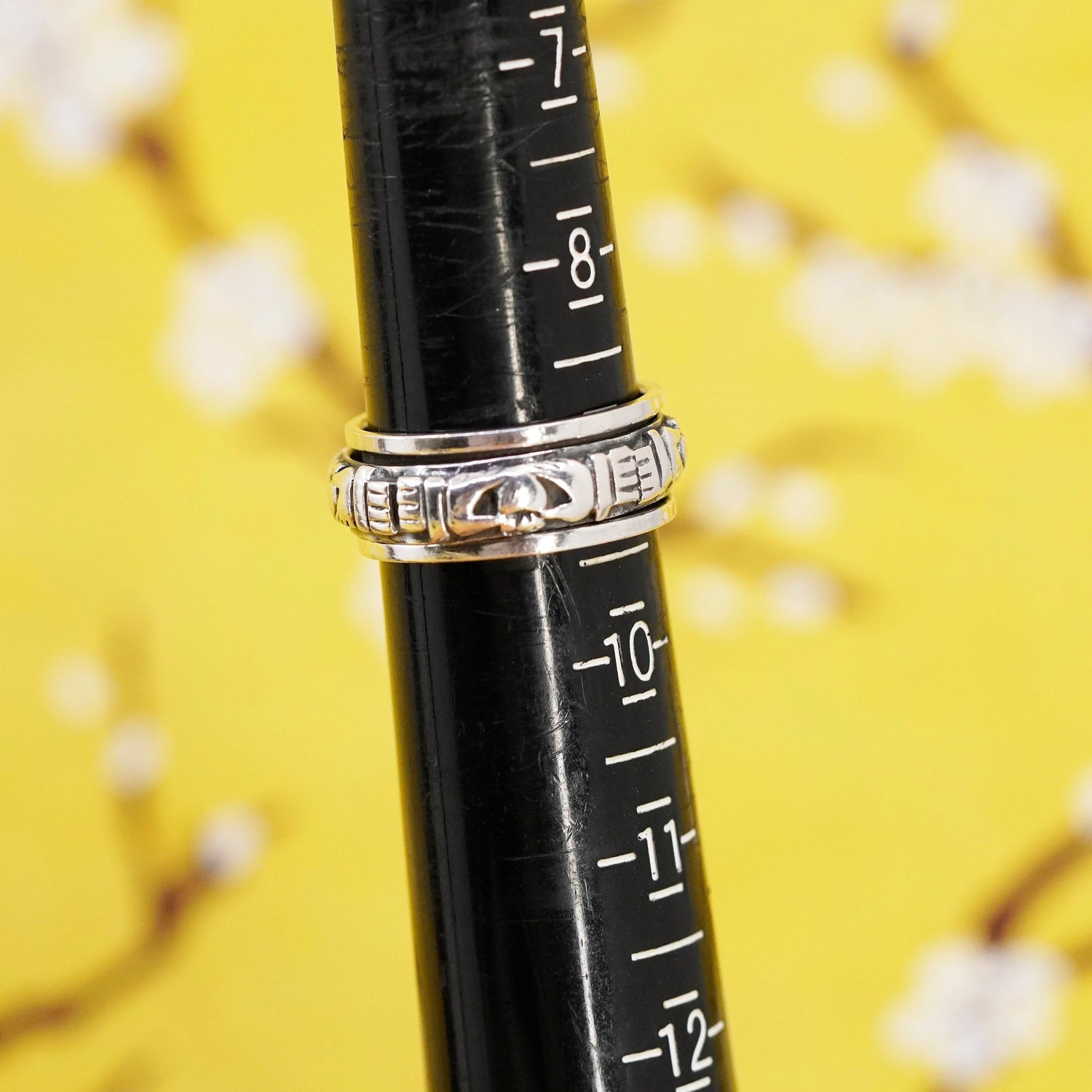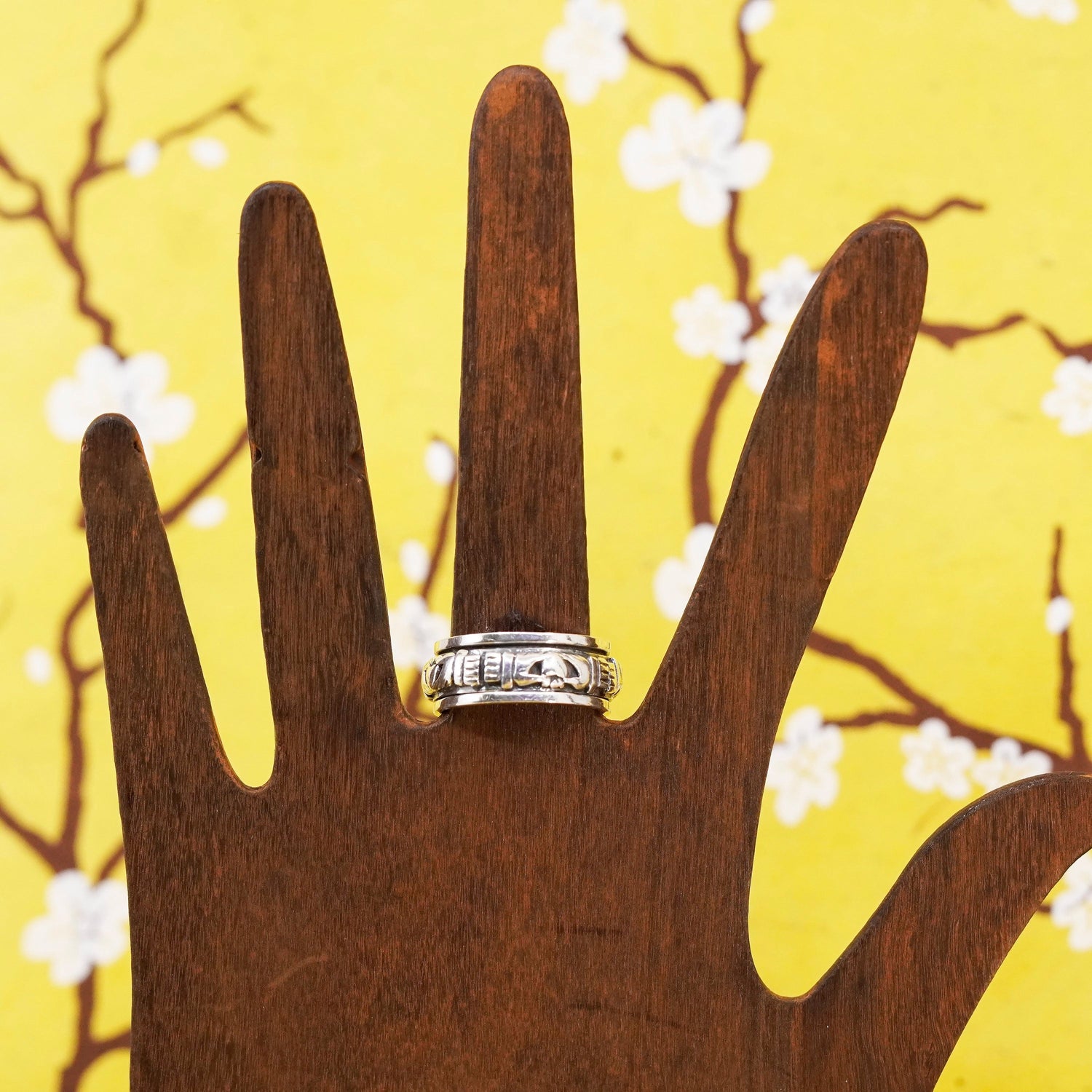 Size 8.75, vtg Sterling silver ring, 925 claddagh heart friendship spinner band