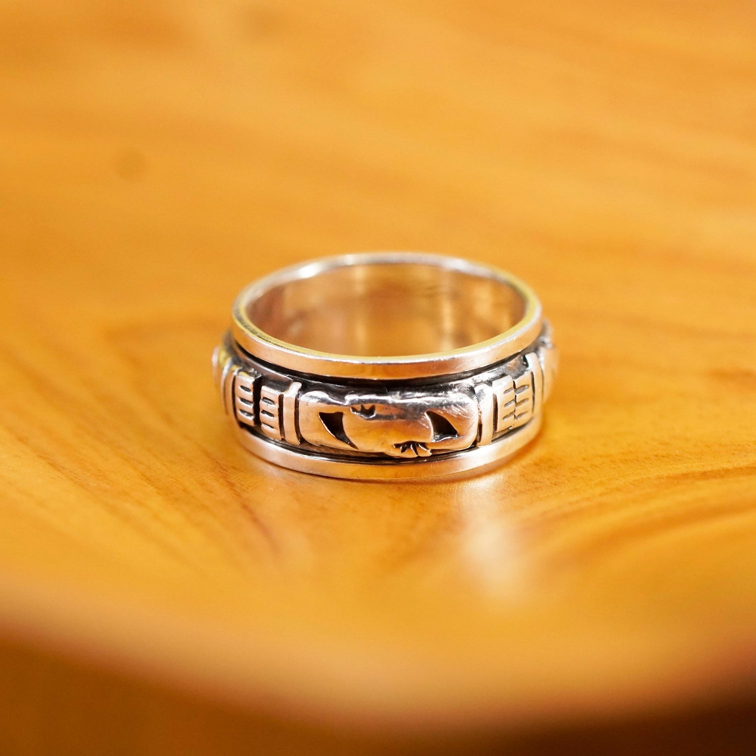 Size 8.75, vintage Sterling silver handmade ring, 925 claddagh heart friendship spinner band, stamped 925