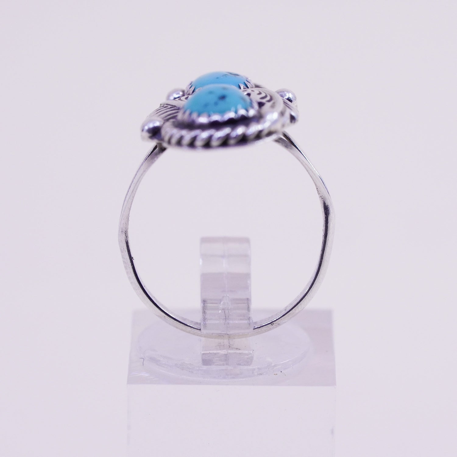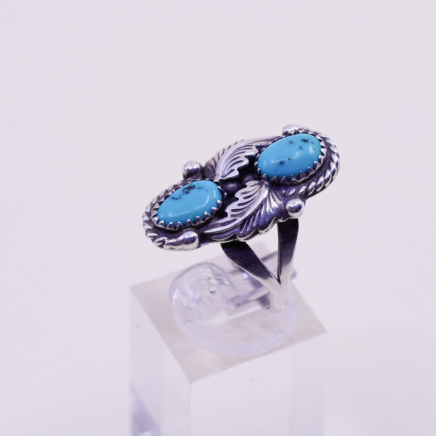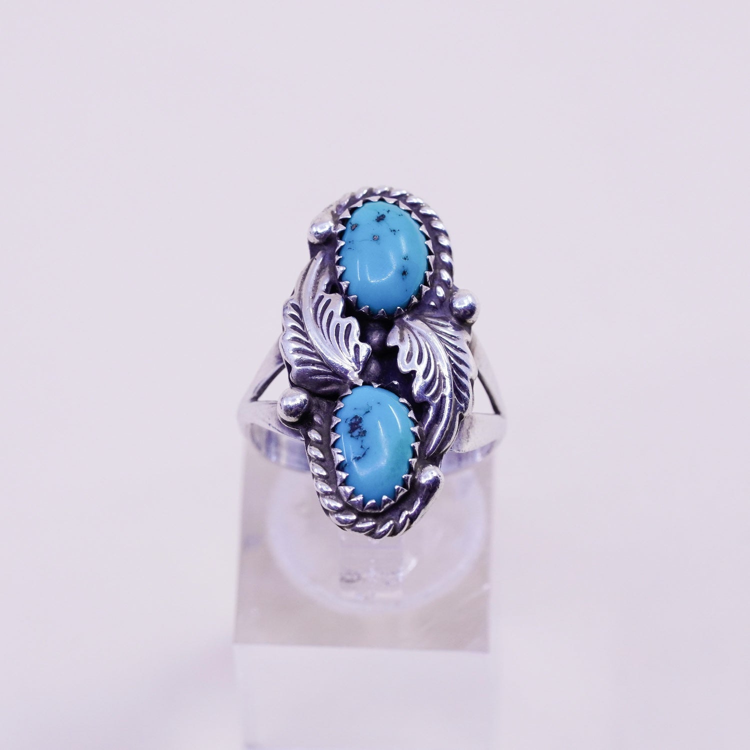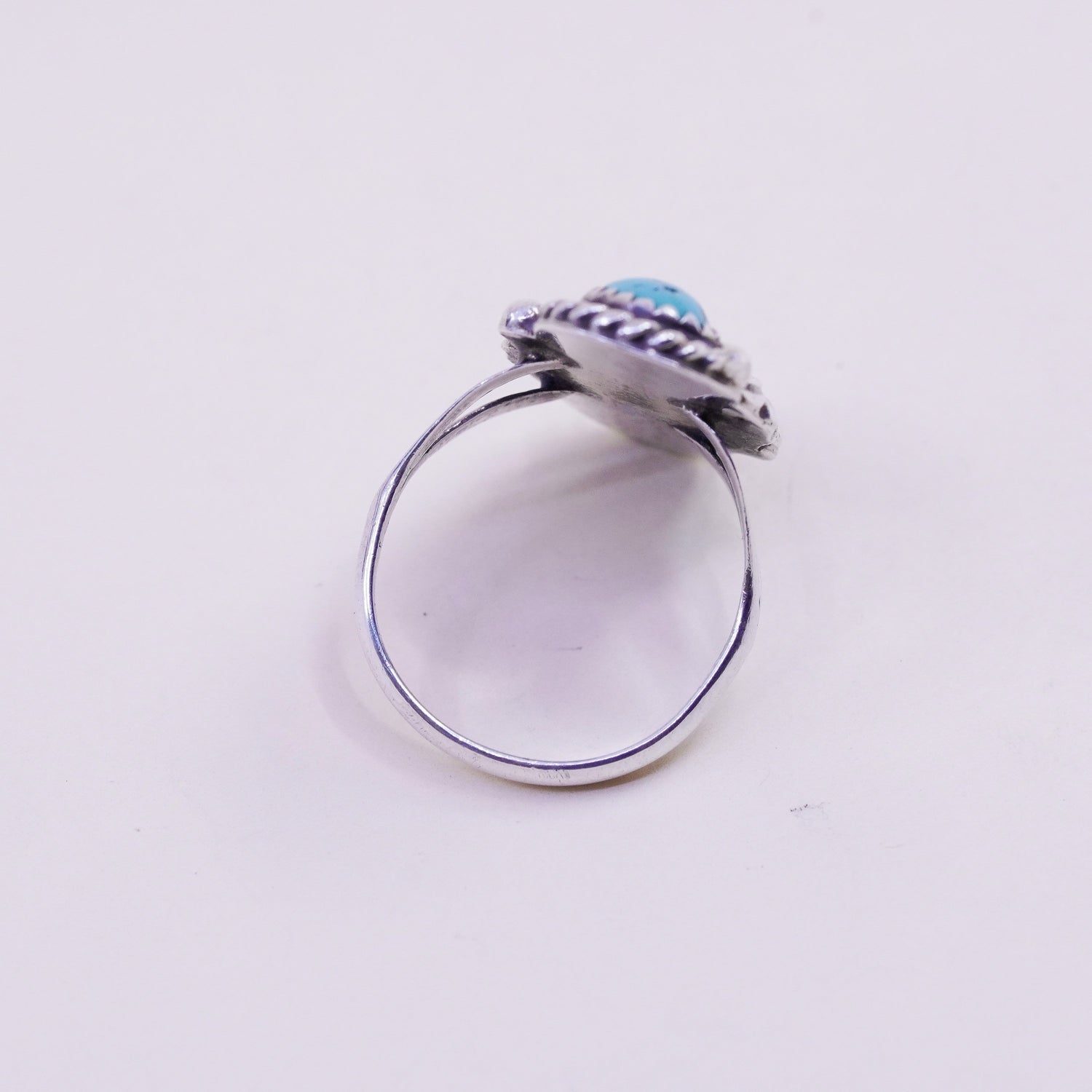Size 8, Vintage sterling silver handmade southwestern 925 ring turquoise leaves