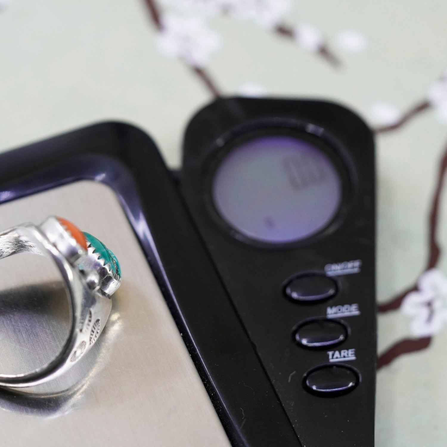 Size 9.75, sterling silver ring, Native American 925 band ring turquoise, coral