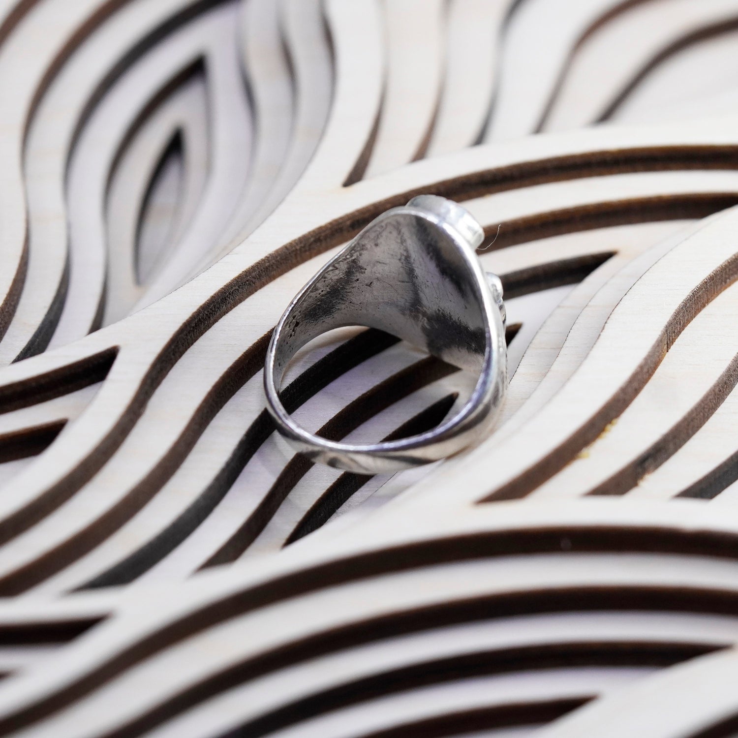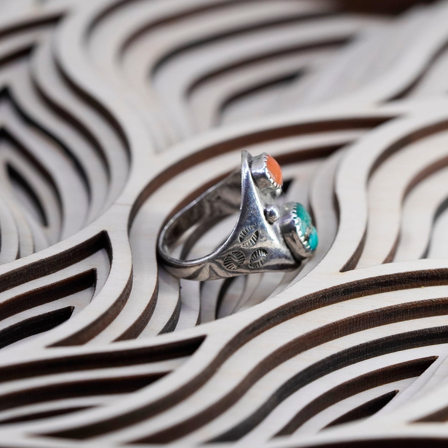 Size 9.75, Vintage sterling silver ring, Native American handmade 925 band ring with turquoise, coral, silver tested, Navajo