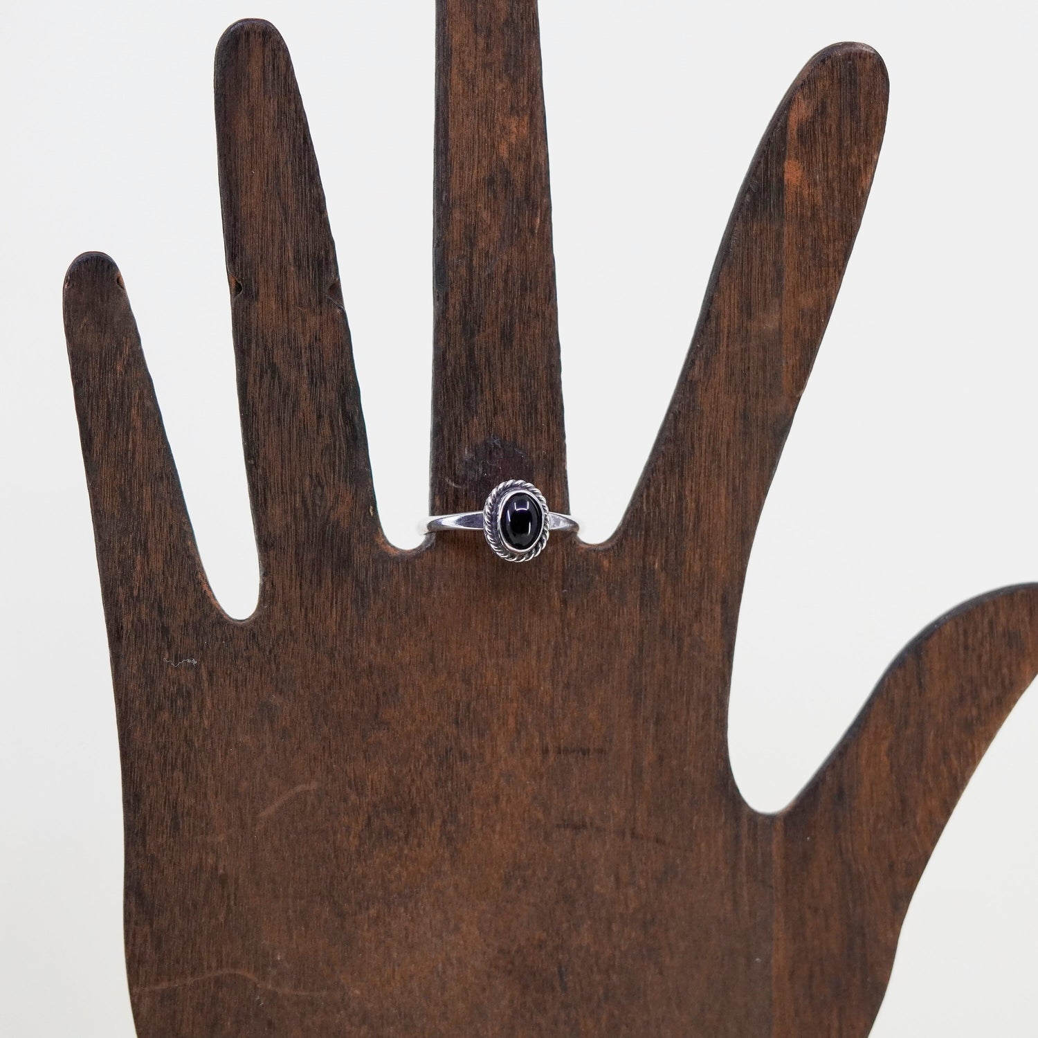 Size 9, Native American HB sterling silver 925 stackable ring w/ oval obsidian