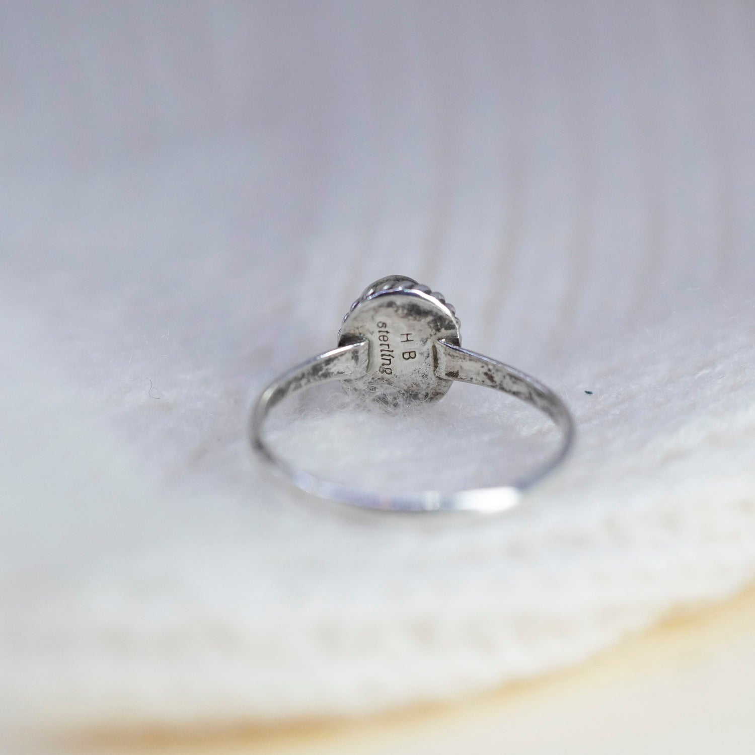 Size 9, Native American HB sterling silver 925 handmade stackable ring with oval shaped obsidian, stamped Sterling HB