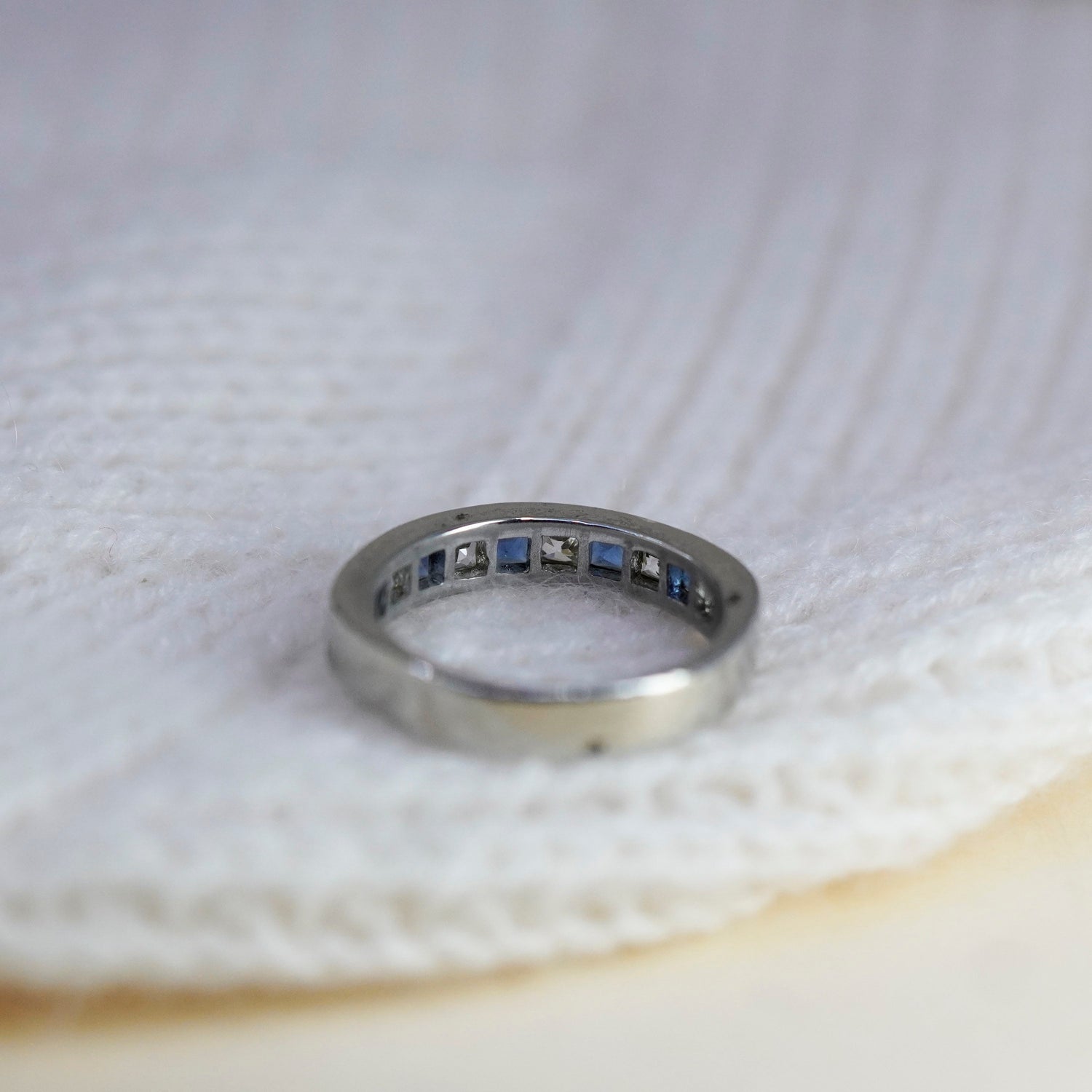Size 9, Sterling 925 silver stackable ring, wedding band with blue and clear CZ