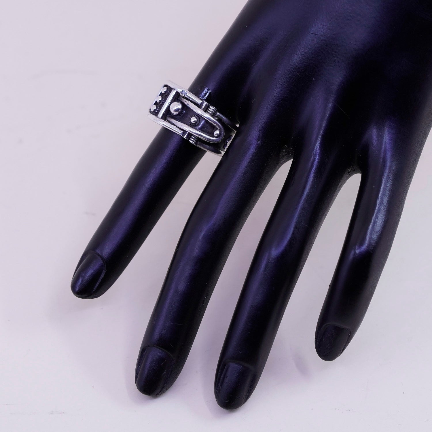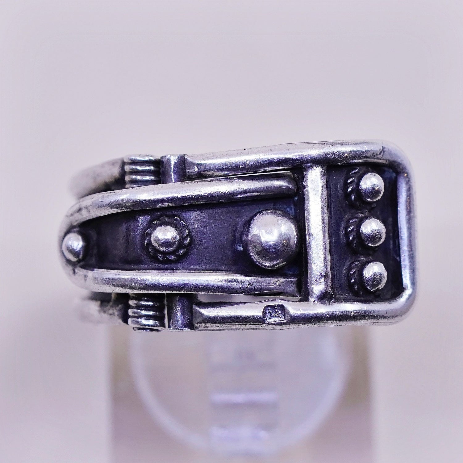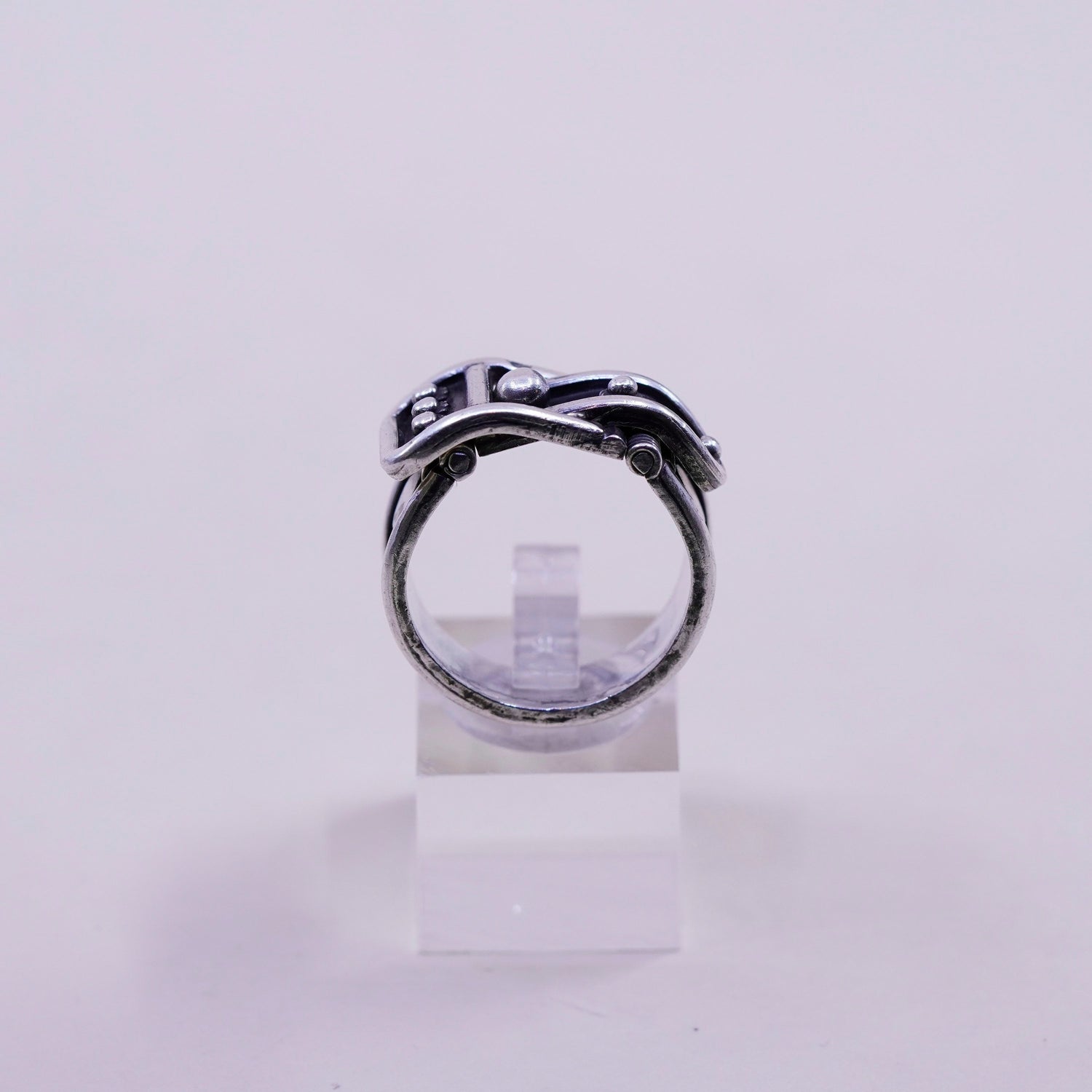 Size 9, Vintage sterling silver handmade ring, 925 bead belt band, silver tested