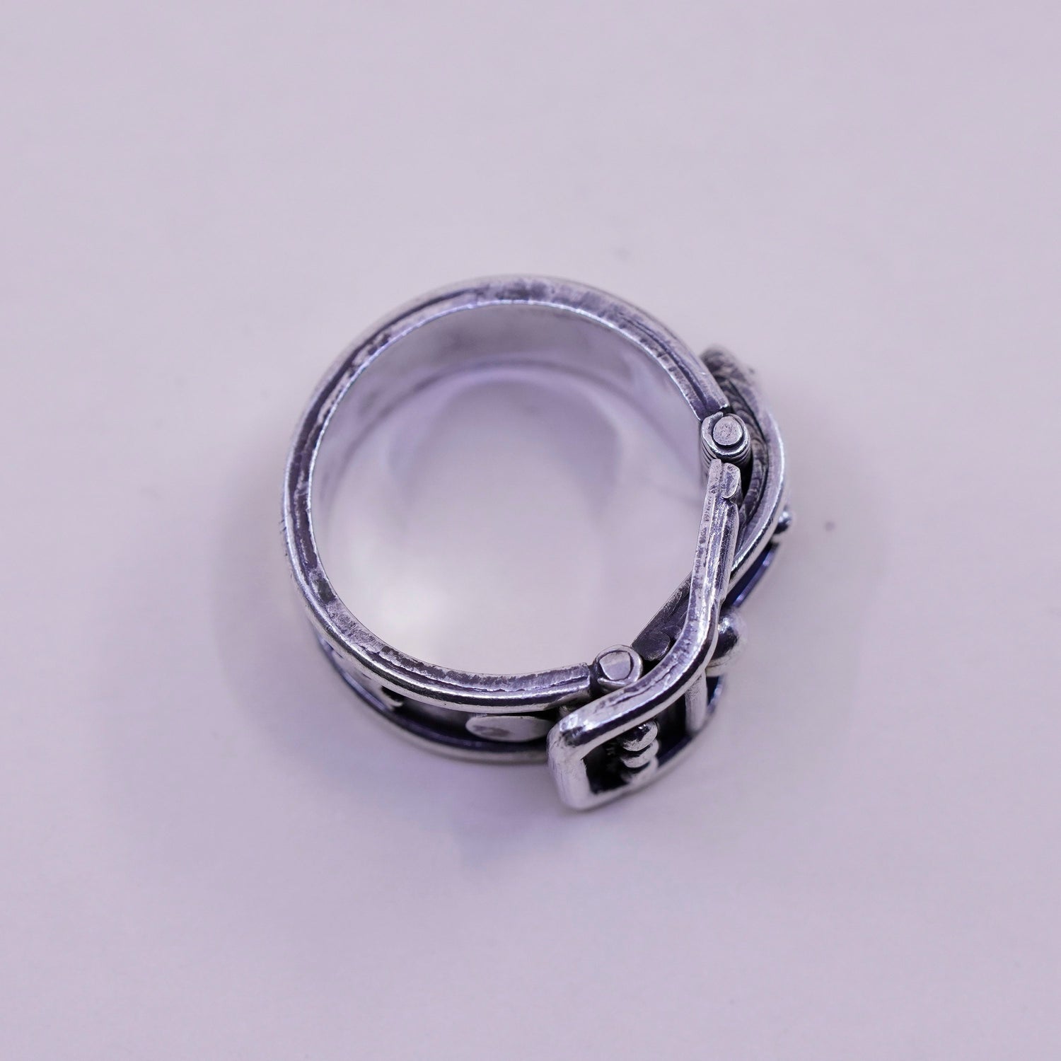 Size 9, Vintage sterling silver handmade ring, 925 bead belt band